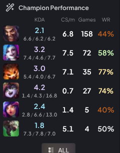 >>562871249>strangely high winrate on luluinteresting. will have to research what you have your summs on when you play draven compared to when you play lulu