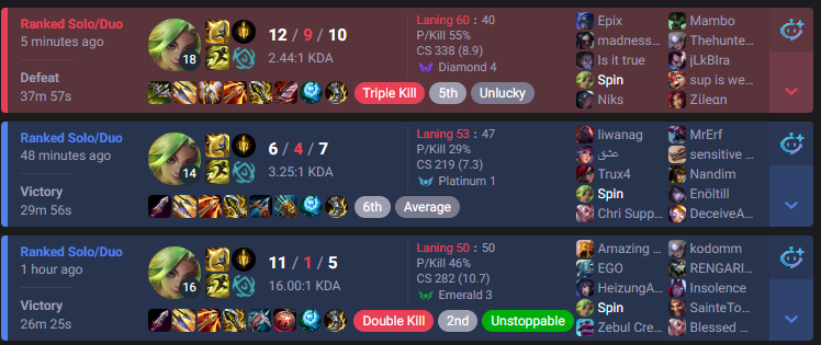 An hour ago I was looking into the abyss of demoting out of Plat. 3 games later, I'm back to an LP where I don't have anxiety about losing again.