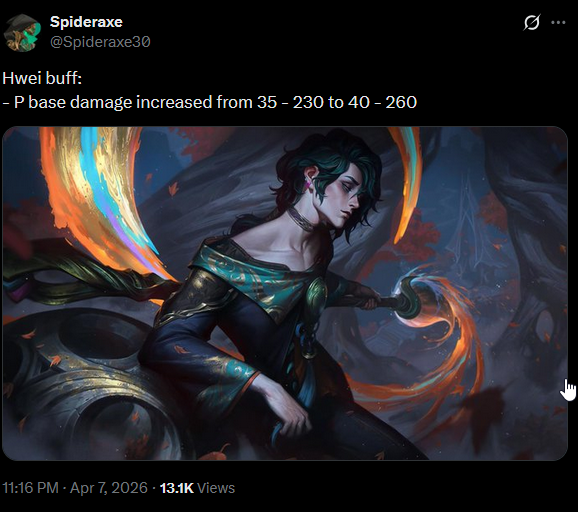 >>562881390very tiny buff but I wouldn't have it any other way. and to his passive which is the meat and potatoes to his early laning damage. I like it!