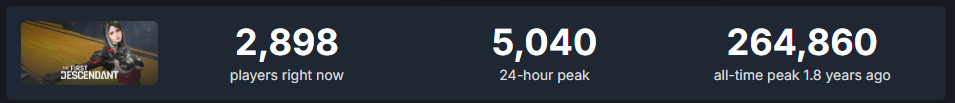 I'm seriously thinking that the EOS status should be in the OP. I'm seriously considering it, I don't see anything wrong with it.like this>EOS statushttps://steamdb.info/app/2074920/charts/What's wrong? I think its totatlly fine