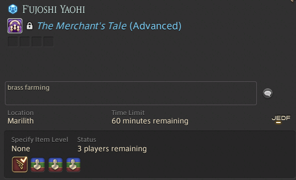 [1:03]5 of 8 party members are eligible for duty rewards. The number of coffers to appear will be 1.