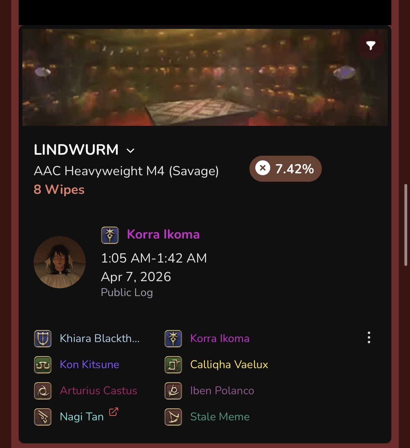 >>562808112https://www.fflogs.com/reports/hnK6pjcZ9yQL4J8x?fight=91