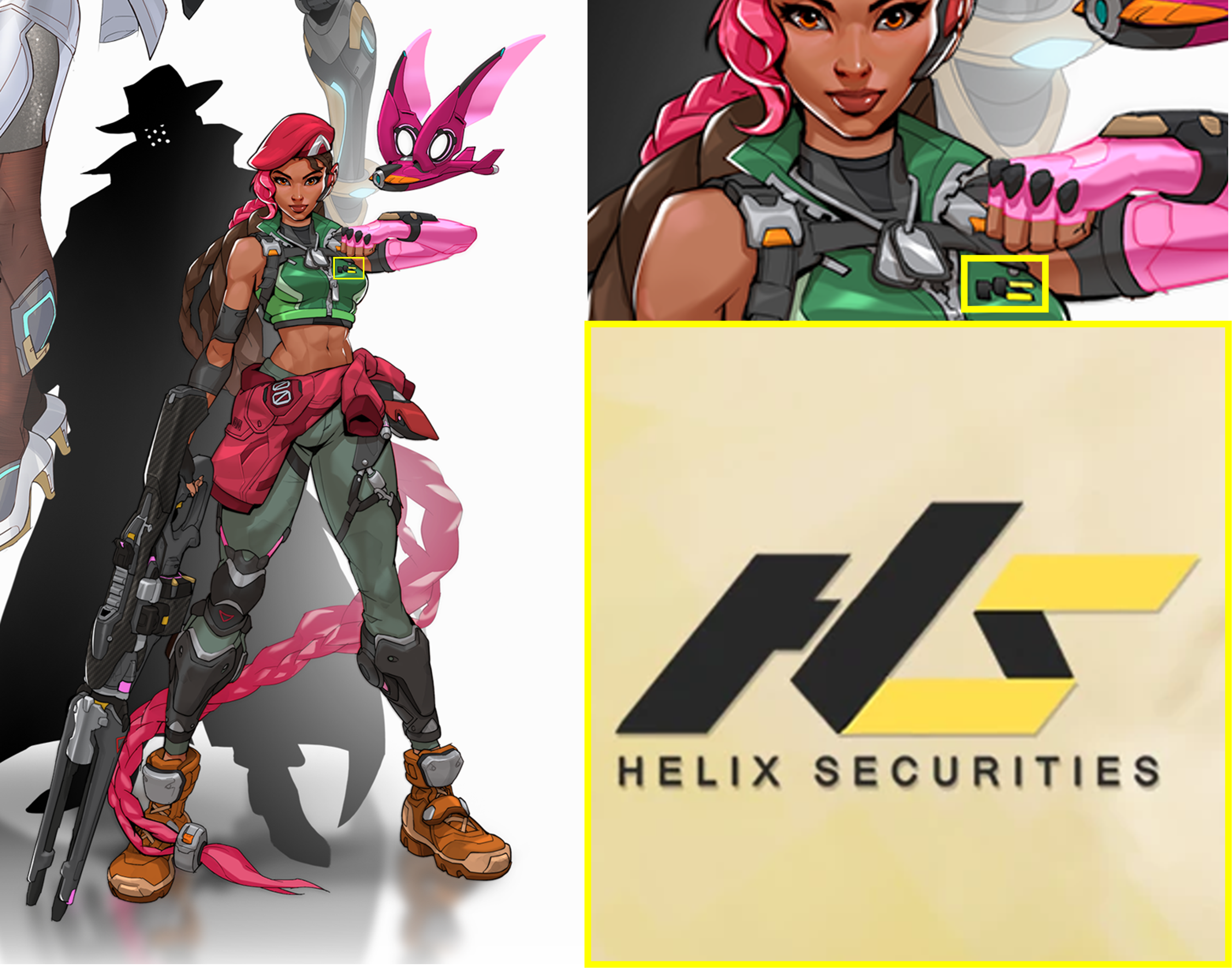 My guess is that the bird robot the new hero has is a camera that reveals enemy silhouettes for your team.