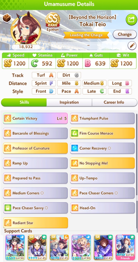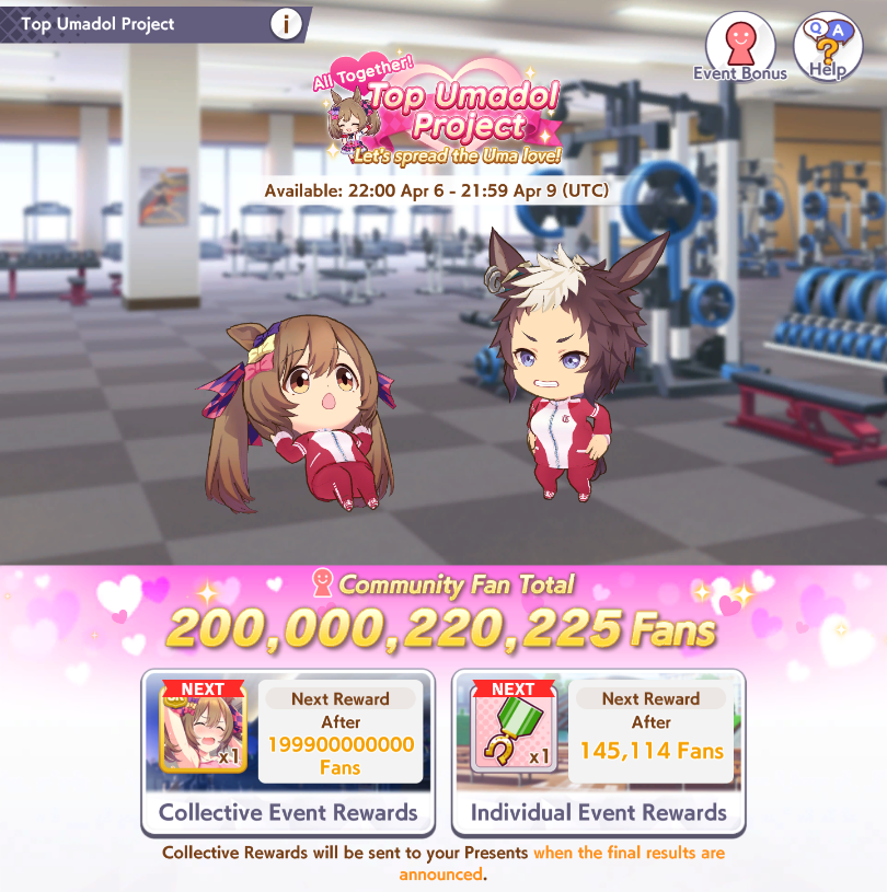 Previous: >>562804319>Global Game NewsLink your account to Cygames iDCurrent Scenario: Make A New Track aka "Trackblazer"Current Rate Up Trainee: Ballroom Seiun Sky (3*), Ballroom Fuji Kiseki (3*)Current Rate Up Support Cards: SSR Symboli Rudolf (STA), SSR Sirius Symboli (WIT)Current CM: Aries Cup - Nakayama Turf 2000mCurrent Event: Ligne Droite Story Event>Schedule03/02 - 04/14 - Halved TP Cost & 2x Career Mode Rewards04/12 - Nishino Flower (3*), Daiwa Scarlet (SSR), Sweepy (SR)04/20 - Yaeno Muteki (3*), Ines Fujin (SSR), Twin Turbo (SSR)04/20 - Aries Cup - Medium/Right/Spring/Firm/200004/26 - Golshi Week Celebration04/26 - Cheerleader Nice Nature (3*), Cheerleader King Halo (3*), Bamboo Memory (SSR), Seeking the Pearl (SSR)04/26 - Tracen Cheer Squad Story Event04/30 - Ines Fujin (3*), MR. C.B. (SSR), Tokai Teio (SR)https://pages.snep.pw/uma/anni-skill-changes>JP Game NewsCurrent Rate Up: Sakura Bakushin O (3* alt), North Flight (3* alt), SSR Daring Tact, SSR Daring HeartNew Scenario "Beyond Dreams" releasedTimeline: https://uma.moe/timelineCygames Webstore: https://webstore.cygames.com/en/umamusume_en>Thread Clubshttps://rentry.co/umaglobalclublistYou must be E3 (20k points) to join a circle. Apply with /uma/ or /vg/ in your profile or post ID in the thread.>All Guides & Resourceshttps://rentry.org/uma26Game databasehttps://gametora.com/umamusume (Click the gear to switch between JP / global server info)A basic guide for newfagshttps://rentry.org/umaglobalFind networks if your region is blocked from the game or clienthttps://www.umavpn.topSeiyuu & Concertshttps://rentry.org/umstUmamusume Birthday Calendarhttps://ウマ娘.攻略.tools/events/birthdayUma Texthttps://umareader.idsmile.xyzCustom Stickershttps://schizo.farm/resources/stickers