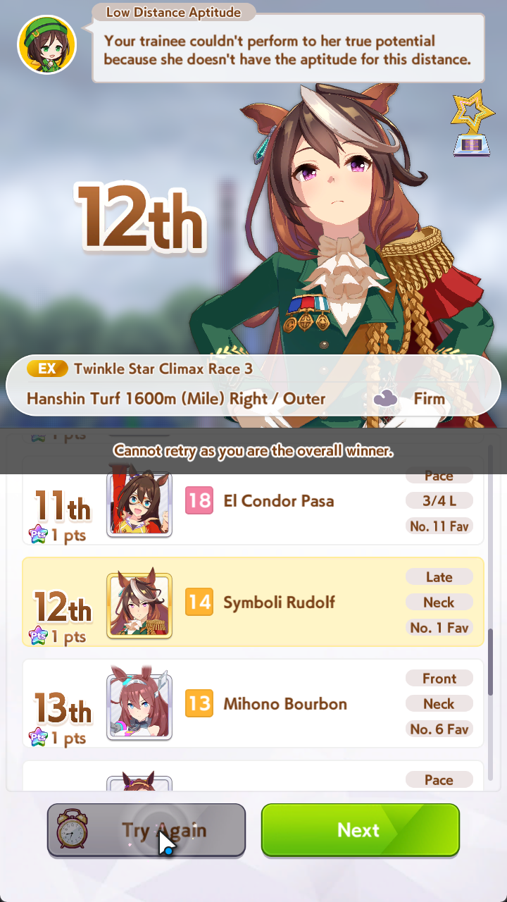 >first ever failed event in Uma history will be Falcon failing to get fanskek what a cucked failure of an umadol