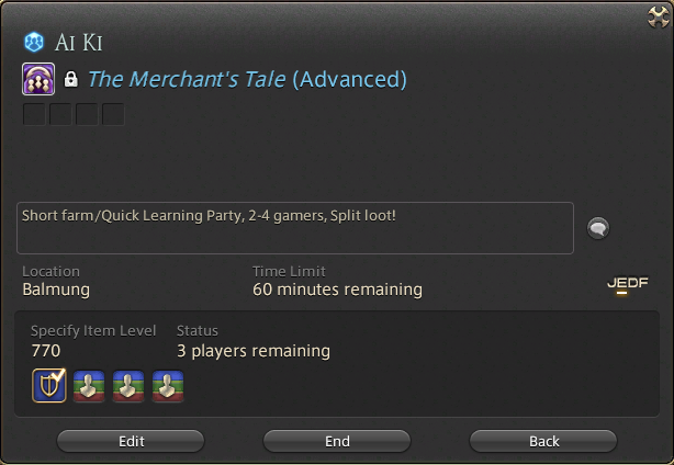 The Merchant's TaleADVANCEDPW:0001DC: CrystalShort farm/Quick Learning Party, 2-4 gamers, Split loot!
