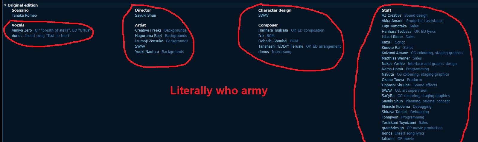 Maeda is a hack and a sell-out, and his sins have mortally harmed the VN industry for years to come. Seriously, it's a fucking tragedy that this fucker is so washed up. He hasn't written anything good in decades, and the things he has written have completely soured anime studios on VN adaptations. He single-handedly killed high budget anime adaptations of visual novels by providing garbage scripts for highly anticipated anime productions, and he paved the way for all the major VN companies to go all-ages just to cover for Hinoue's inability to draw h-scenes. He caused untold damage to the entire industry for his personal gain, and he made billions of dollars in the process.He could've gone down as one of the greatest writers of his era, but instead he decided to stab his original fanbase in the back and dedicate his life to gacha instead. Maeda's tombstone should read: "此処にて金持ち裏切り者が葬られています。" If the engraver doesn't guarantee that this asshole rests in piss, then I will personally visit his grave and piss on it.