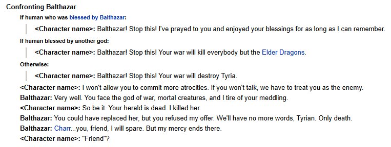 >>562876364I made a Sylvari for HoT and enjoyed the dialog about dealing with Mord in my head.Without spoilers, do Humans, or Humans blessed by Balthazar, get any extra dialog during LWS3 or PoF?