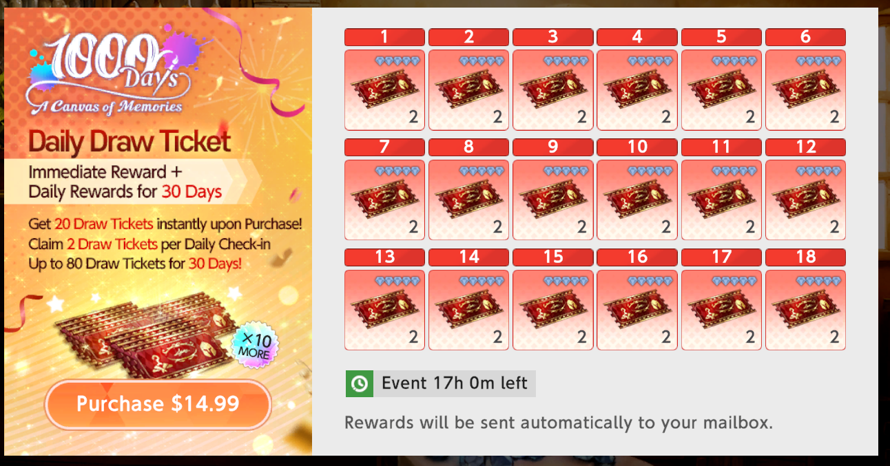 >>562836764I agree with the other anon saying this will be good for newgluttis. I started playing right after the 1.5 anni and fire took the longest to build a proper team for. It basically took me 9 months until I had enough investment in Lia/Rubia since so many of their costumes need +3 for SP reduction and then I still had to wait 3 more months for Loen Rerun to finally get a decent team 2. Ikagura will likely worth it if you're started playing during the 2.5 anni or later and your Lia sucks.