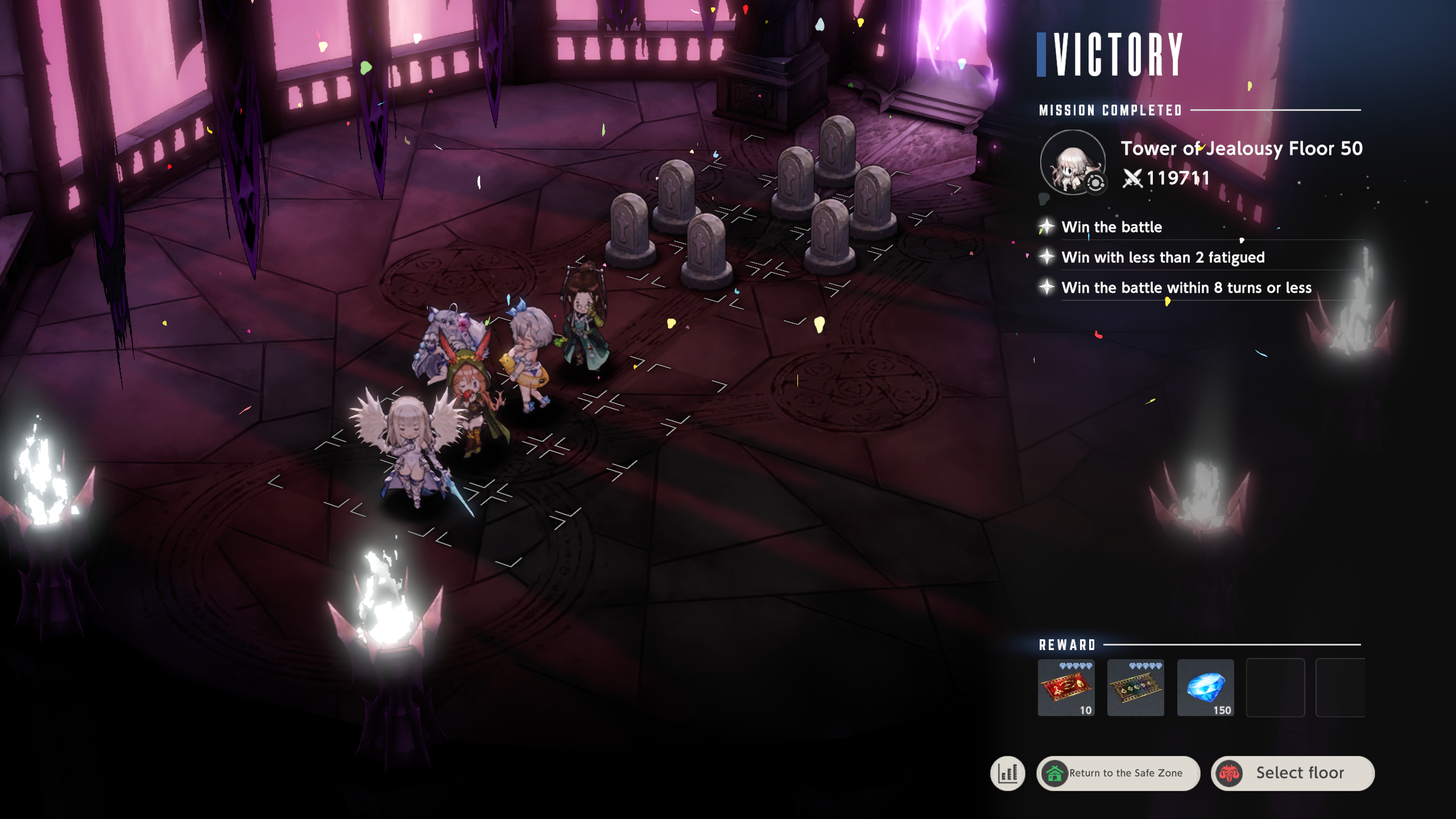 >>562915858It has been years since I did that but I do remember 41-50 being turbo cancer because of the pressure. I did find this in my screenshot folder, Bustia carried that shit hard with Olstein being there for the Silence/SP regen and attack debuff with Sage while Rou did kicks/dodges (this was pre-RH rework).Nowadays there's lots more options, I'd check the "popular costumes" atop the screen and see what others used per floor per tower.