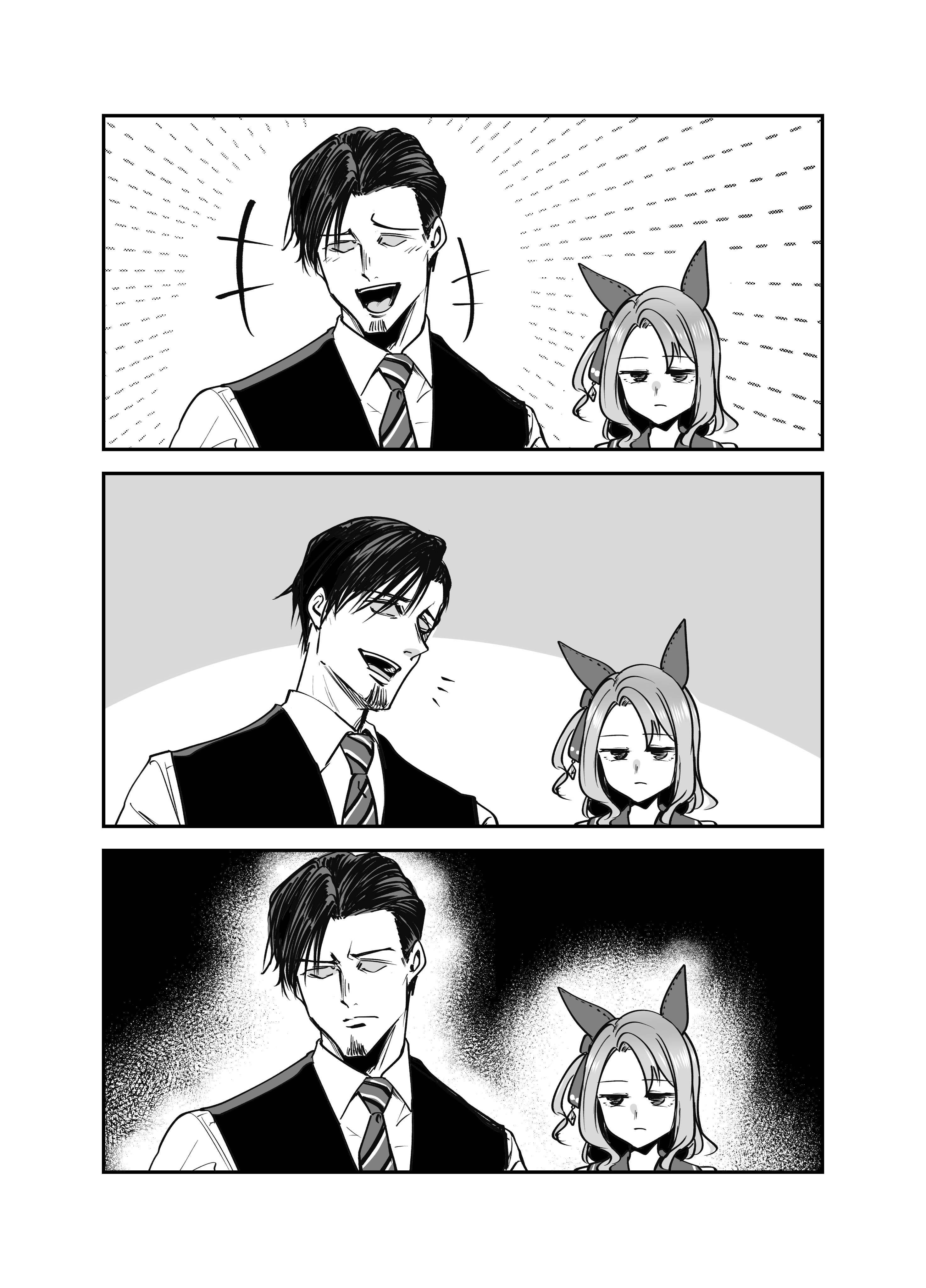 >>562843308I'll reply to you because it's also interesting to me that contrary to her good ending her trainer is there on her normal ending, and she's making plans to win the L'Arc with (You).