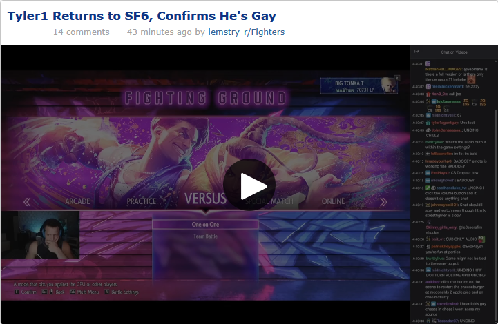 >>562872656why would they get tyler1 for a showmatch? no one gives a fuck about him playing street fighter