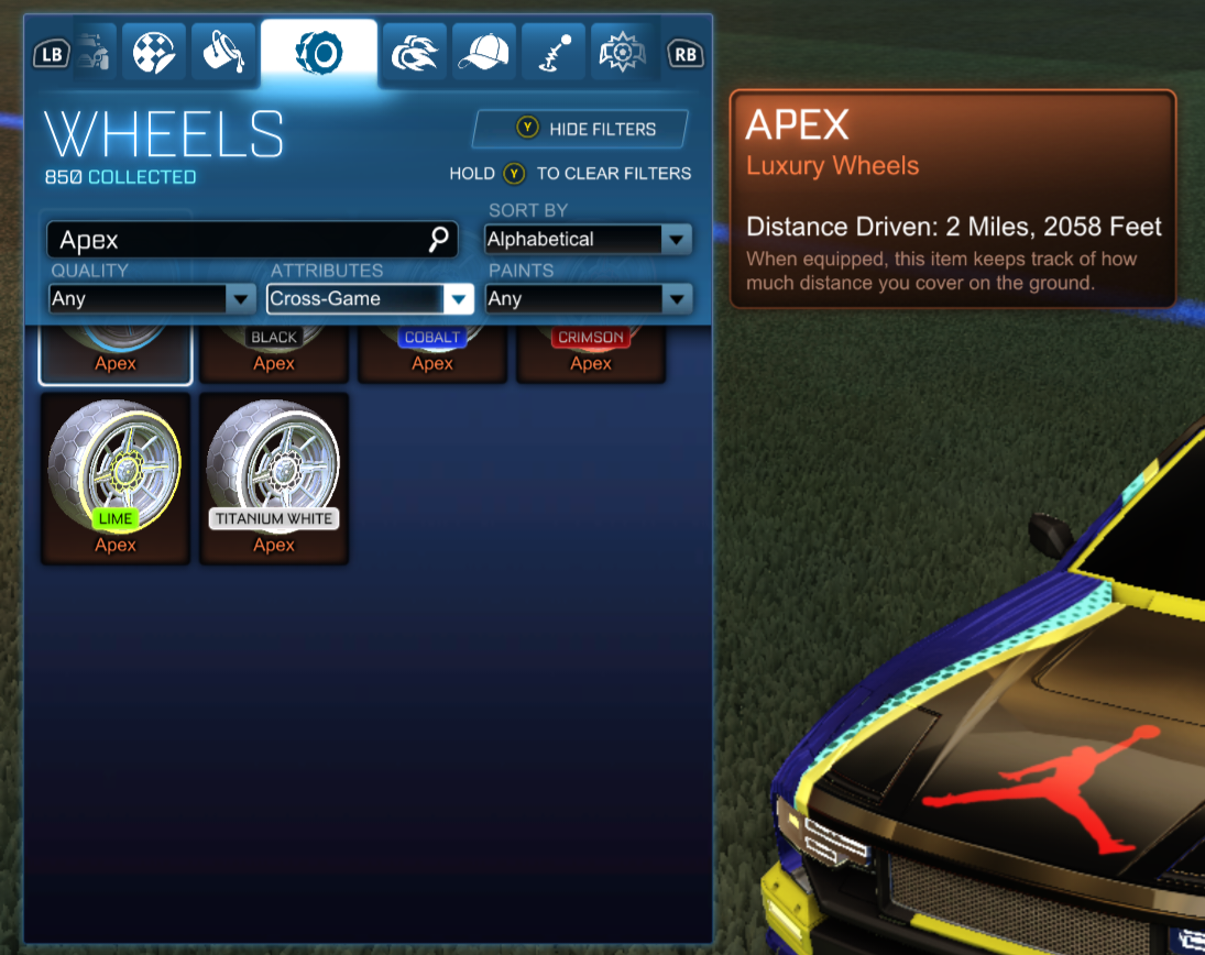 Just recently, the "Apex" wheels have been tagged as cross-game. If you have been keeping up with the recent RL twitch drops, expect these in your locker in the coming weeks.As noted, these are/were twitch drop items so it is up in the air if they'll be in the item shop or not.