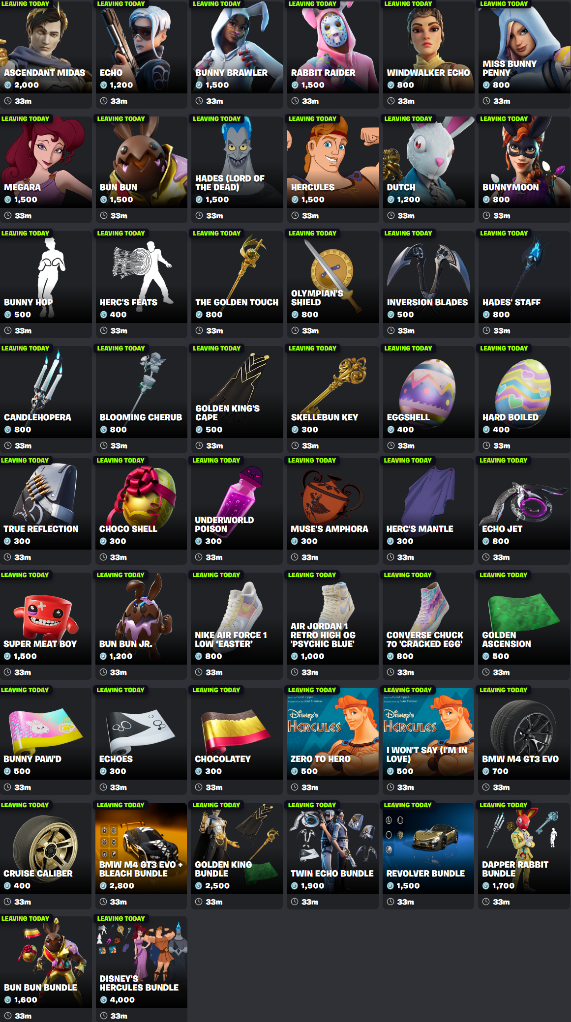 easter stuff and hercules leaves in a few hours