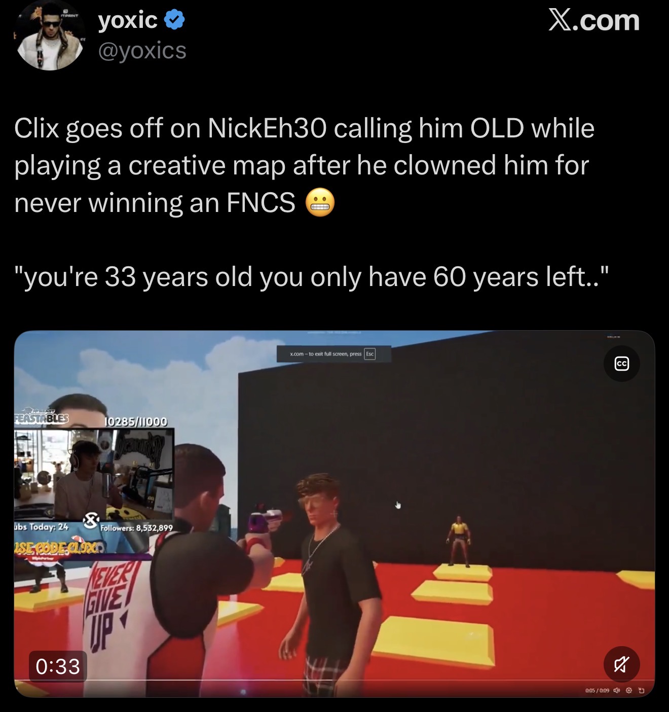 >>562862340You just reminded how fucked some people are willing to take Fortnite as a shitty day job>Back when ZB wasn't even a thing yet C2S5>1v1 and it's just me against a turbo autist as we both try to get sightlines building up and up>Obviously lose cause of the shitty charge shotgun and I find out he's actually streaming>Log off the game cause I have irl work at home things to do>Check back 6-7 hours later out of morbid curiosity to find he's still streaming and pub stomping with other tryhards in squads with the lights not even turned on in straight darkness.