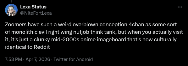 notice how the furry posting stops, and lexa posting begins, full gas.