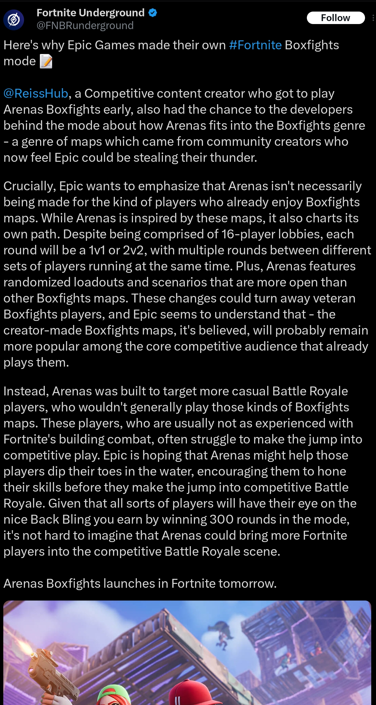 >>562907506more variety would be nice but we're reaching the point epic is so devoid of creativity they're coping box fights, not to say they had any creativity before when festival, rocket racing and lego are nothing unique