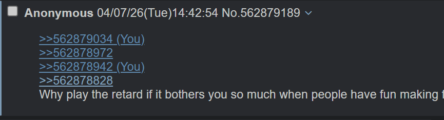 >>562874950It's ok, they will just say it's that femra samefagging and posting themselves anyway