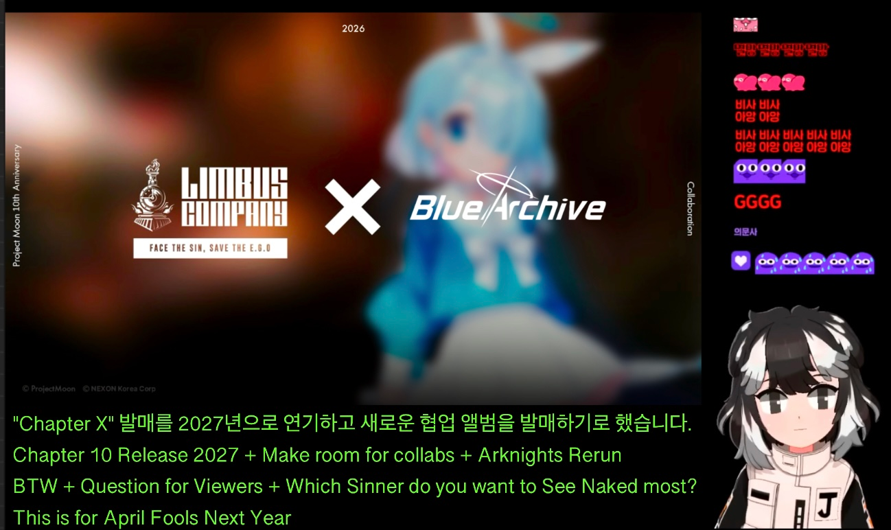 Previous thread: >>562850634Season 7 - Kumo no Ito2025.12.31 —Mirror Dungeon #7 - Mirror of Names and Spiders2026.02.19 —Refraction Railway Line 5 - Merry Go Round2025.02.20 —>Upcoming Events2026.04.16 — 2026.05.14Chapter 9.5 - Twining Threads>Current Events2026.03.19 — 2026.04.16Chapter 7.5 - LCB Regular Check-up BokGak>Current Extractions2026.04.02 — 2026.04.16[000] The House of Spiders: The Ring Nursefather Hong Lu[000] The House of Spiders: The Ring Apprentice Faust2026.03.19 — 2026.04.16[000] LCE E.G.O:: AEED Gregor[HE] Ardor Blossom Star Faust2026.04.02 — 2026.04.16Target Extraction: [ Yi Sang ]FAQs! This game is directly tied to the setting of Project Moon's previous games, Lobotomy Corporation and Library of Ruina, and is set after both. Expect spoilers for those games in this thread.! The tutorial is important.>Download linksAppStore: https://apps.apple.com/app/limbus-company/id6444112366Google Play: https://play.google.com/store/apps/details?id=com.ProjectMoon.LimbusCompanySteam: https://store.steampowered.com/app/1973530/Limbus_Company/>Other linksOfficial twitter: https://twitter.com/limbuscompany_bOfficial youtube: https://www.youtube.com/@ProjectMoonOfficialOfficial site: https://limbuscompany.global>Required readinghttps://mega.nz/folder/xosDkZ5Z#Wt4JpUt5Bb2XG77pxuuXpw>For all your EGO and Sinner info needshttps://limbus.kusoge.xyz/https://gll-fun.com/en/>Useful resources and a general guidehttps://rentry.org/lcg_resourceshttps://rentry.org/lcbguidehttps://rentry.org/LCB_optimal_grind_guidehttps://lcb-days-since-last-id.carrd.co/https://lcb-days-since-last-ego.carrd.co/>Countdownhttps://lcbcountdown.carrd.co/