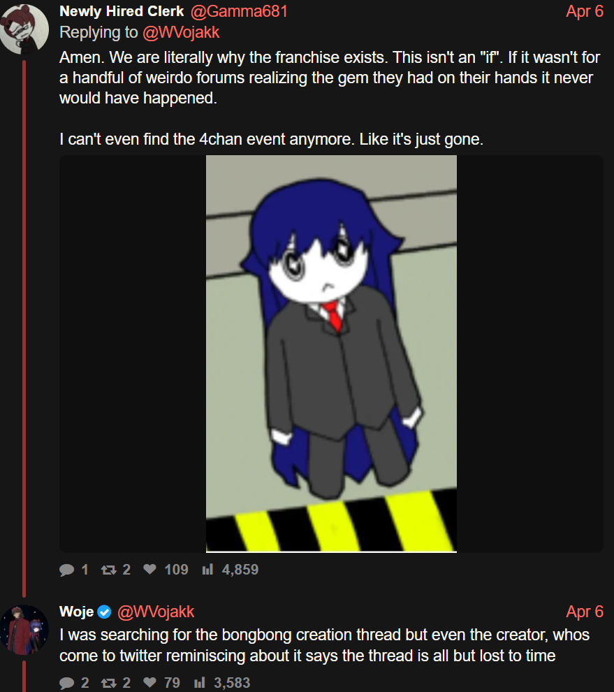 >>562900341I'm not autistic enough to check but I think that's probably a larp as well. I remember an anon posted his entire lobcorp folder of images and art from /v/ threads that he saved and shared, and at a glance I don't see any of those "oldfag" arts he's posting in there. It could always have been made later than anon's folder but still.Also I feel like TQ's SSLP of lobcorp was also huge for the game but that might just be more personal preference.