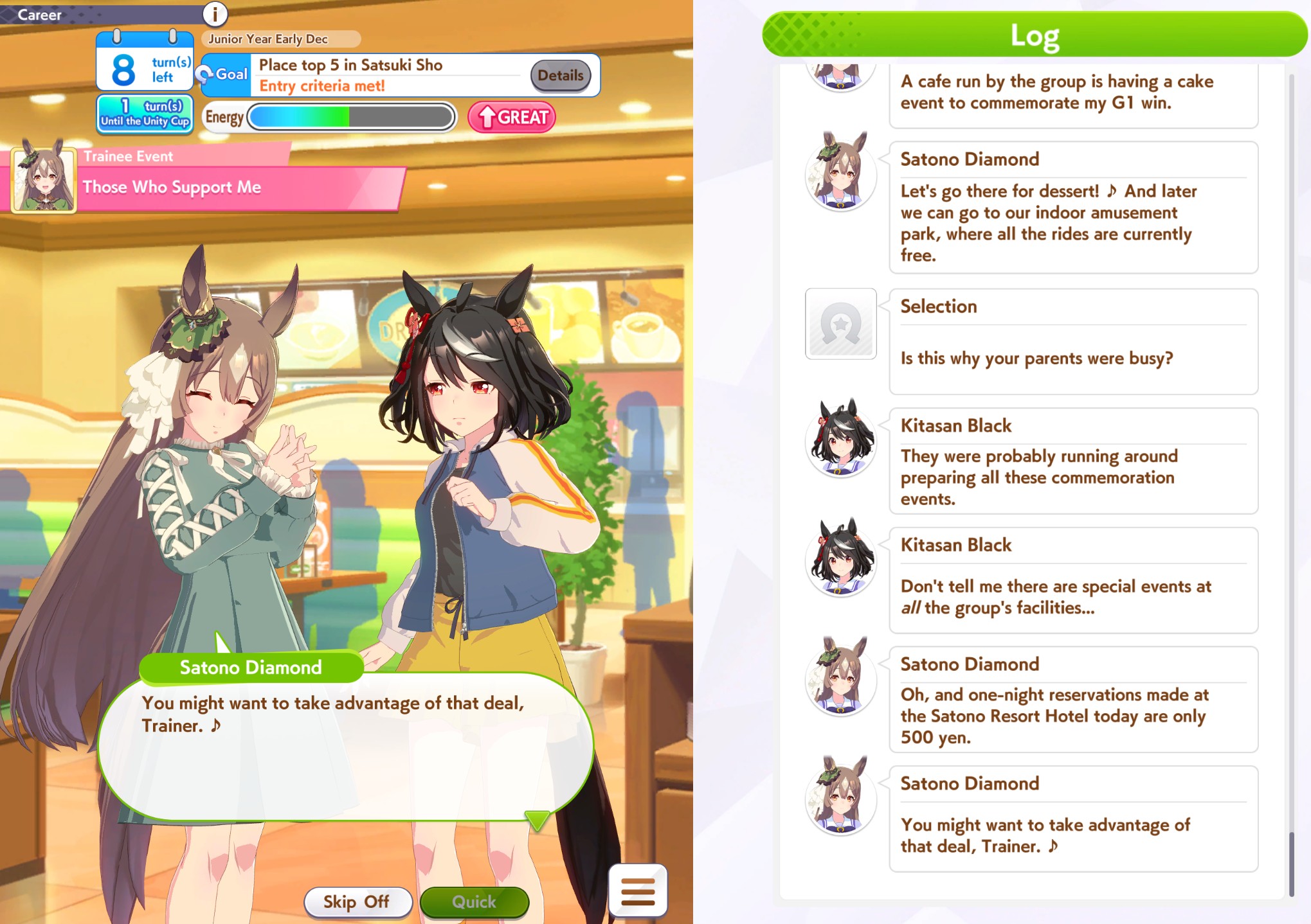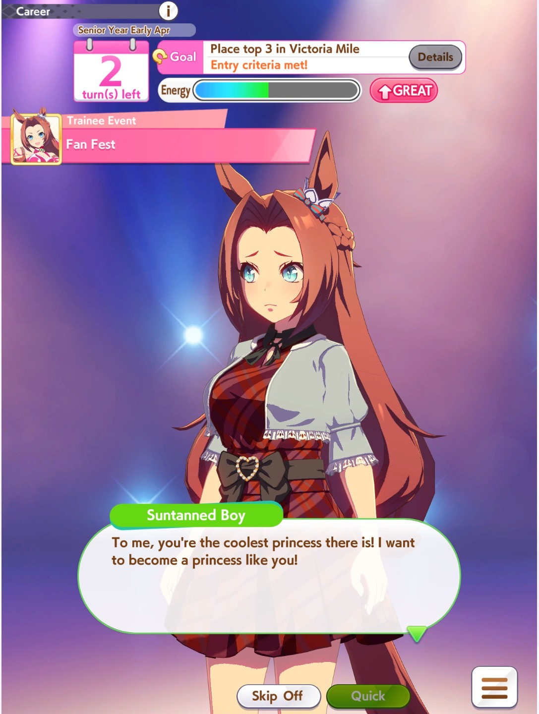 I love having a good run then Kitasan refuses to finish her chain leaving me curvatureless, turning my trainee into glue