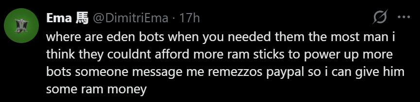 >>562904161>>562904324TURN ON THOSE BOTS FUCKING EDEN OR ILL RAPE ALL OF /uma/ INCLUDING THE /v/FUGEES