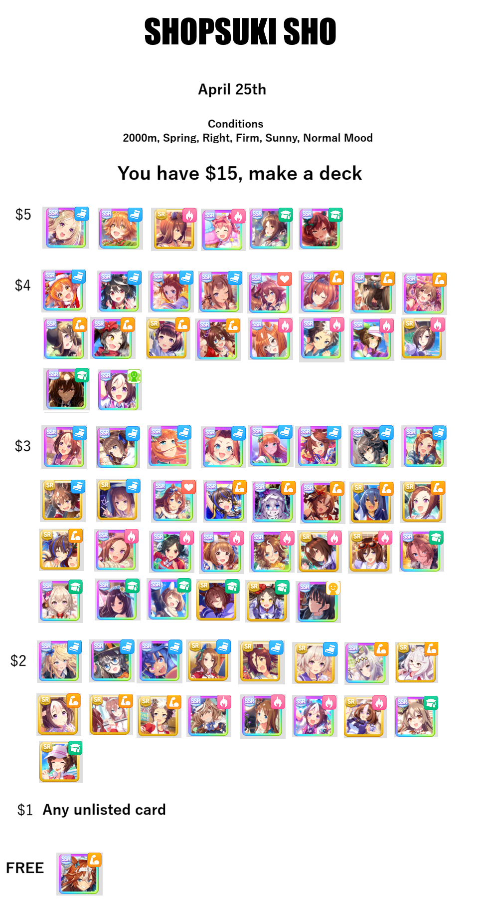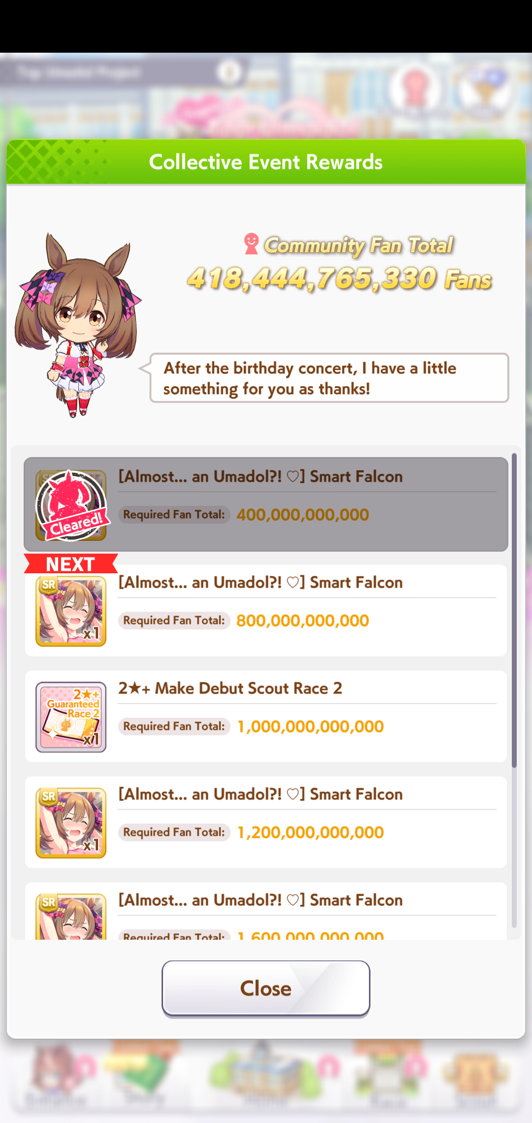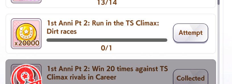 Previous: >>562879923/v/IGGERS GET OUT>Global Game NewsLink your account to Cygames iDCurrent Scenario: Make A New Track aka "Trackblazer"Current Rate Up Trainee: Ballroom Seiun Sky (3*), Ballroom Fuji Kiseki (3*)Current Rate Up Support Cards: SSR Symboli Rudolf (STA), SSR Sirius Symboli (WIT)Current CM: Aries Cup - Nakayama Turf 2000mCurrent Event: Ligne Droite Story Event>Schedule03/02 - 04/14 - Halved TP Cost & 2x Career Mode Rewards04/12 - Nishino Flower (3*), Daiwa Scarlet (SSR), Sweepy (SR)04/20 - Yaeno Muteki (3*), Ines Fujin (SSR), Twin Turbo (SSR)04/20 - Aries Cup - Medium/Right/Spring/Firm/200004/26 - Golshi Week Celebration04/26 - Cheerleader Nice Nature (3*), Cheerleader King Halo (3*), Bamboo Memory (SSR), Seeking the Pearl (SSR)04/26 - Tracen Cheer Squad Story Event04/30 - Ines Fujin (3*), MR. C.B. (SSR), Tokai Teio (SR)https://pages.snep.pw/uma/anni-skill-changes>JP Game NewsCurrent Rate Up: Sakura Bakushin O (3* alt), North Flight (3* alt), SSR Daring Tact, SSR Daring HeartNew Scenario "Beyond Dreams" releasedTimeline: https://uma.moe/timelineCygames Webstore: https://webstore.cygames.com/en/umamusume_en>Thread Clubshttps://rentry.co/umaglobalclublistYou must be E3 (20k points) to join a circle. Apply with /uma/ or /vg/ in your profile or post ID in the thread.>All Guides & Resourceshttps://rentry.org/uma26Game databasehttps://gametora.com/umamusume (Click the gear to switch between JP / global server info)A basic guide for newfagshttps://rentry.org/umaglobalFind networks if your region is blocked from the game or clienthttps://www.umavpn.topSeiyuu & Concertshttps://rentry.org/umstUmamusume Birthday Calendarhttps://ウマ娘.攻略.tools/events/birthdayUma Texthttps://umareader.idsmile.xyzCustom Stickershttps://schizo.farm/resources/stickers