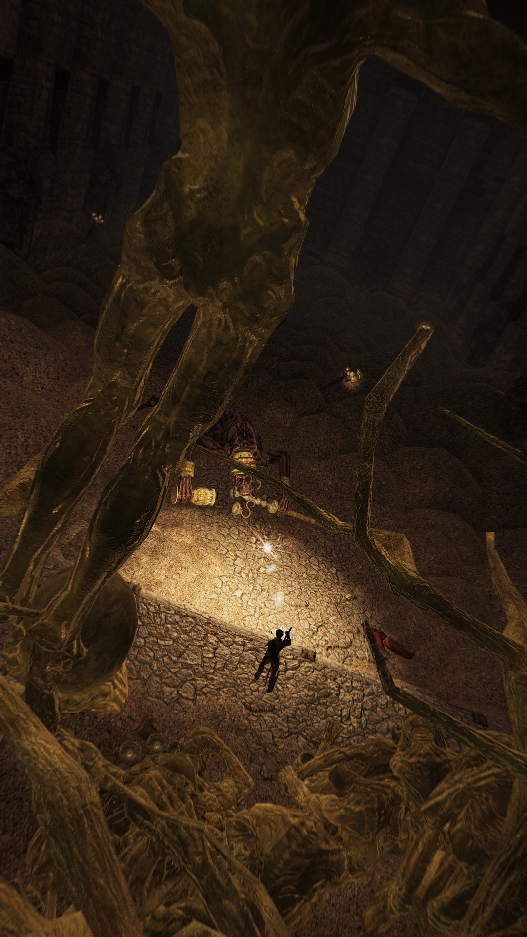 Uh, excuse me? It's not the retexture cause I just swapped it and I still have pitch black voids everywhere. My vram isn't maxxed out either.