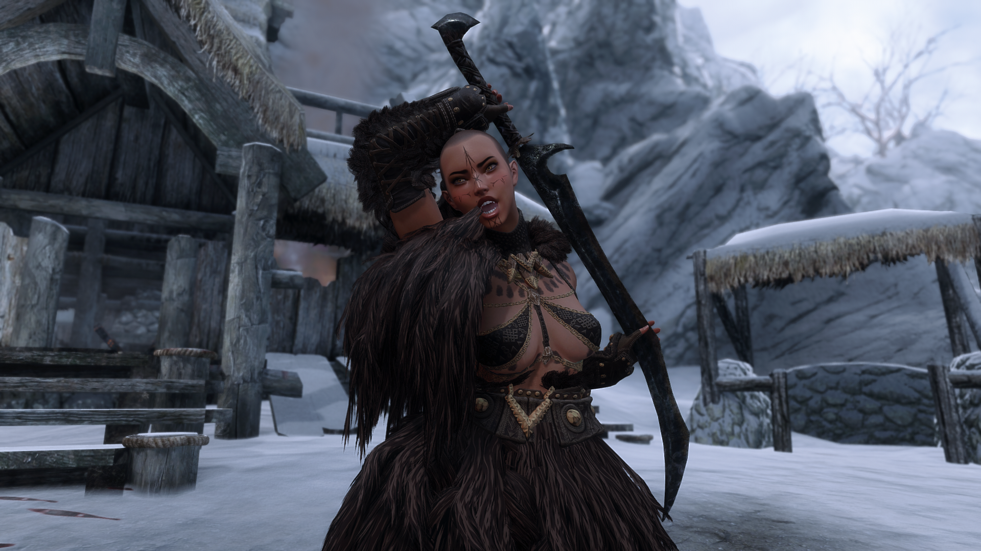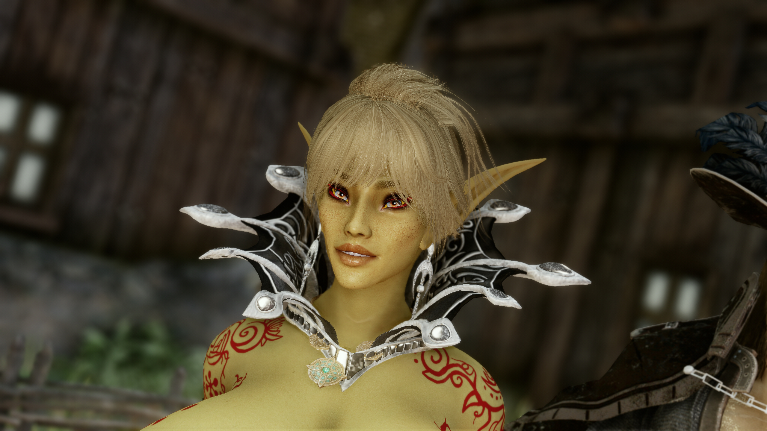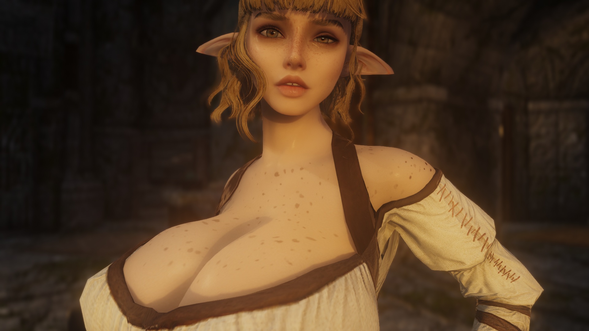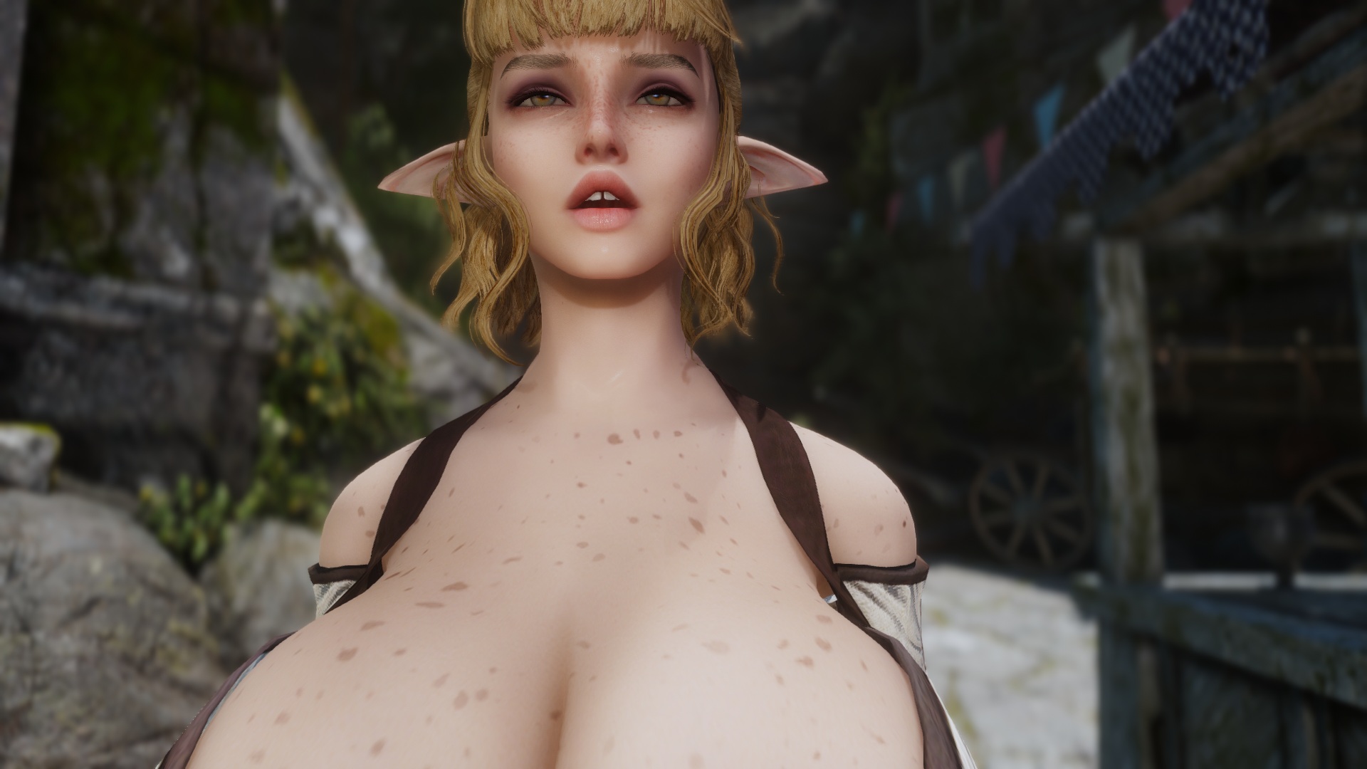 For anyone experiencing this neck seam issue - pic related - when using Mu Dynamic Normalmap and Racial Skin Variance, there's a patch availablehttps://www.nexusmods.com/skyrimspecialedition/mods/163408I'm probably late but I just spent some time figuring this out. If you don't know which version to use just pick breast + belly.>>563011892>>563012112Same issue with my Riften, I'm using City of Crossed Daggers, Medieval Markets as well as some leaf enhancements and some other mods that shouldn't affect that area. I wonder if it's something to do with the leaves? But it only happens when looking at the market, and the framerate usually increases after a few seconds. I don't know if it's related to the well but from memory when I had the well remover installed it was still dropping.