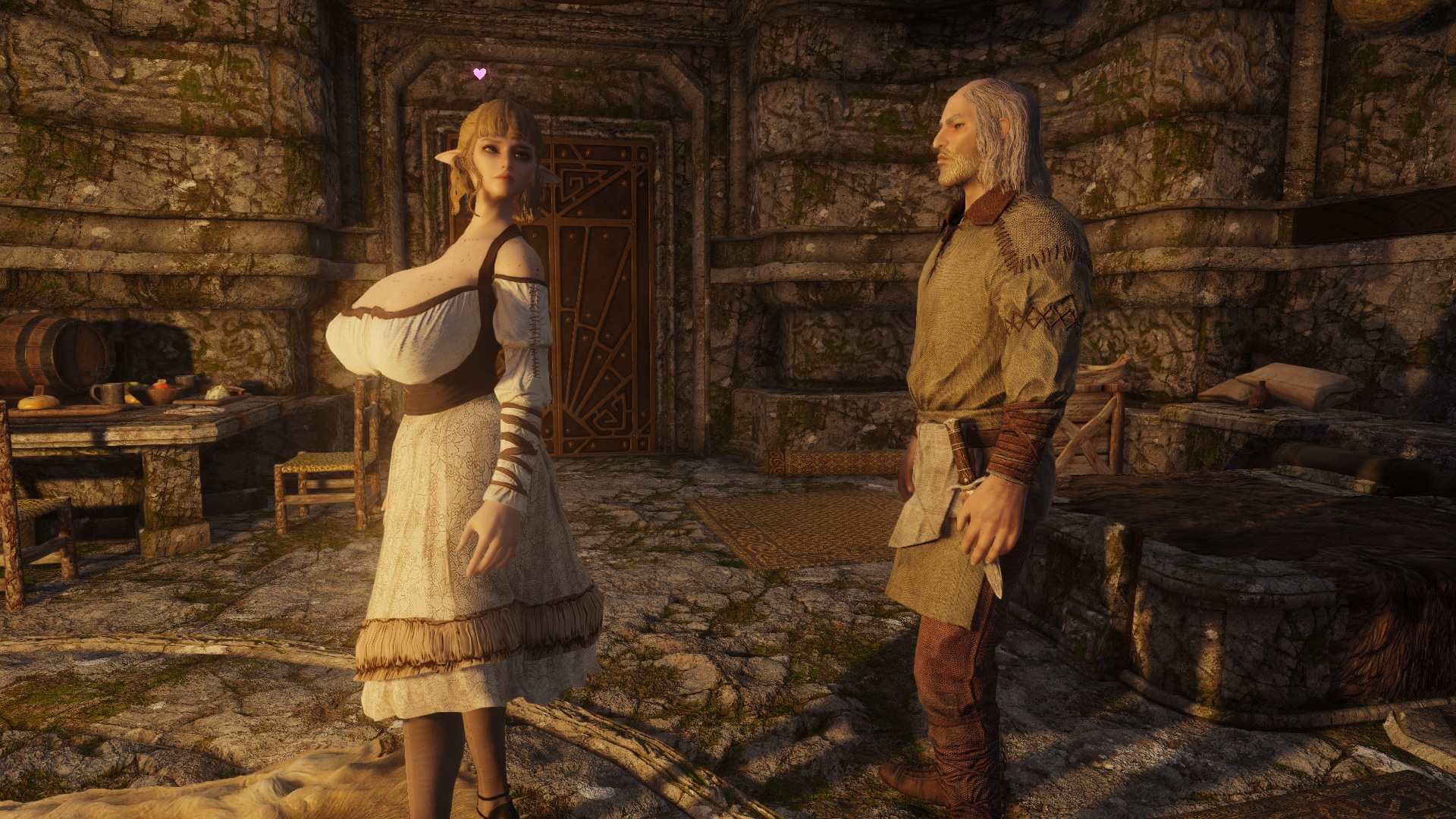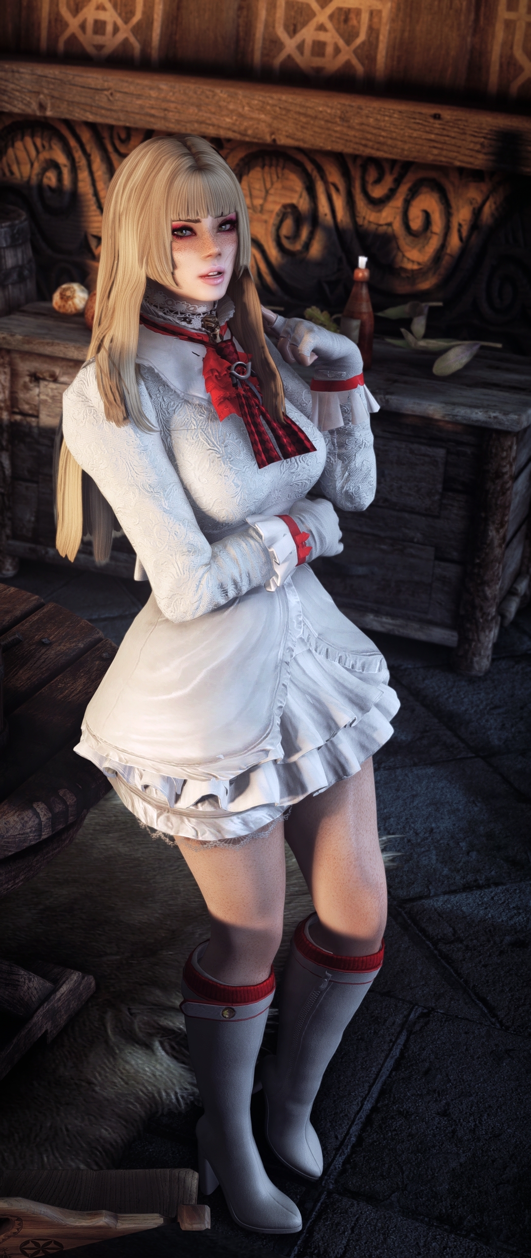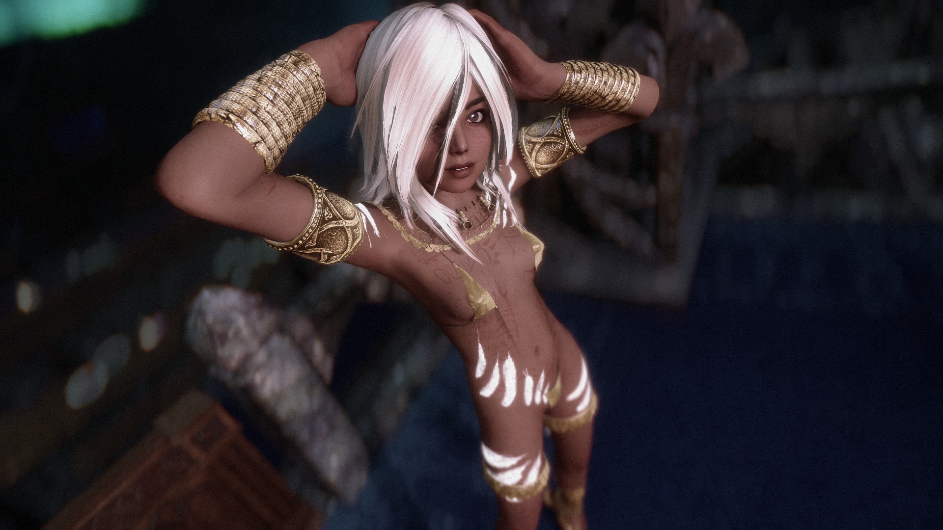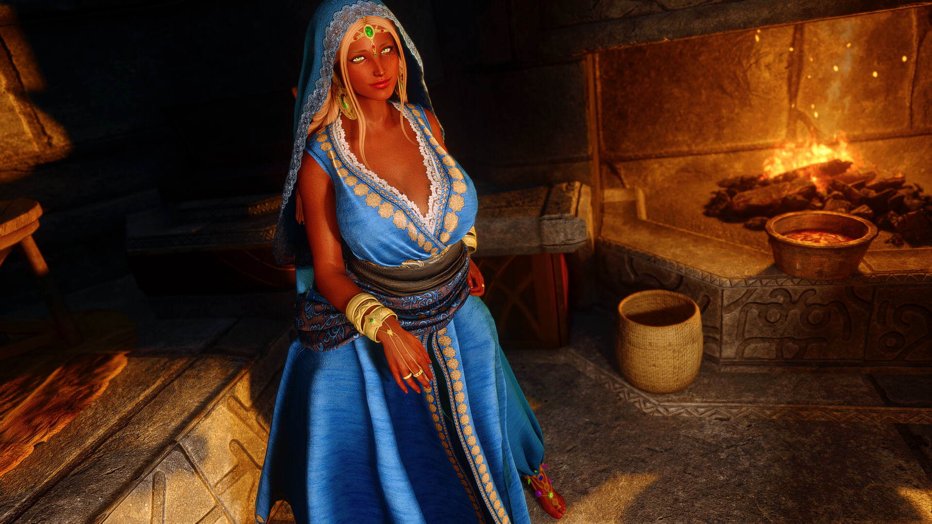 For anyone experiencing this neck seam issue - pic related - when using Mu Dynamic Normalmap and Racial Skin Variance, there's a patch availablehttps://www.nexusmods.com/skyrimspecialedition/mods/163408I'm probably late but I just spent some time figuring this out. If you don't know which version to use just pick breast + belly.>>563011892>>563012112Same issue with my Riften, I'm using City of Crossed Daggers, Medieval Markets as well as some leaf enhancements and some other mods that shouldn't affect that area. I wonder if it's something to do with the leaves? But it only happens when looking at the market, and the framerate usually increases after a few seconds. I don't know if it's related to the well but from memory when I had the well remover installed it was still dropping.