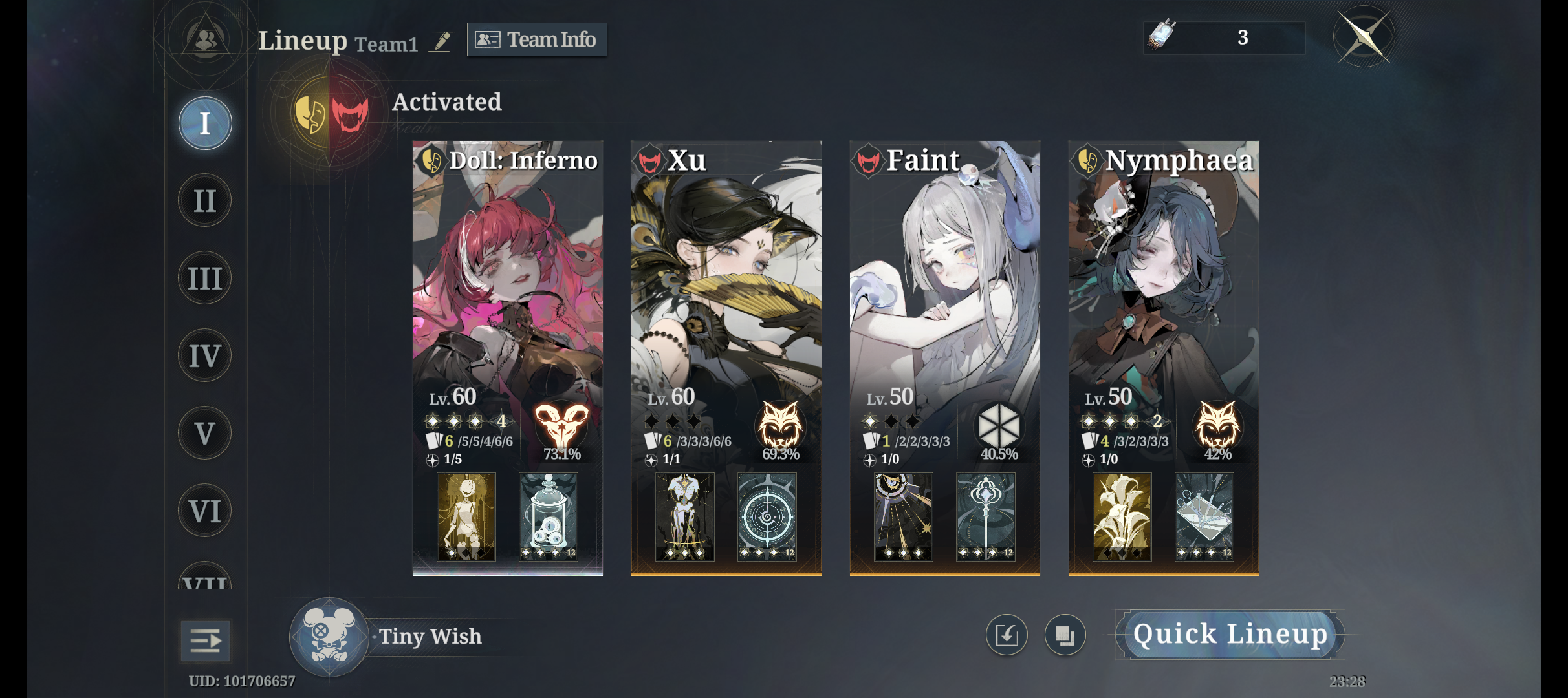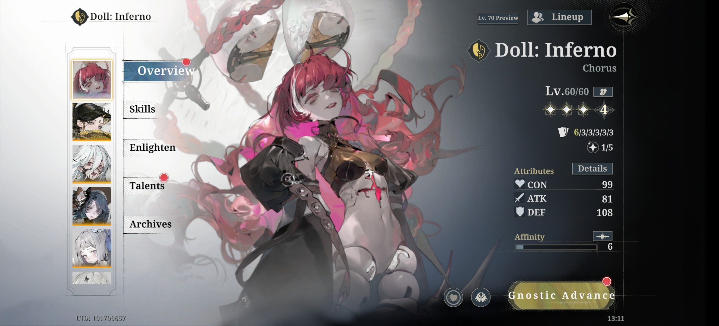 >go play czn>get the new character>equip her, auto stages for upgrades>finallyletsplaythegame.mp4>get reminded i have to farm save data>lose all interest againMeanwhile i can just chill here, do my teambuilding and enjoy grinding some stages. All Morimens needs is some endless roguelike mode like Chaos Worlds (without savedata) in czn and it will be perfect.