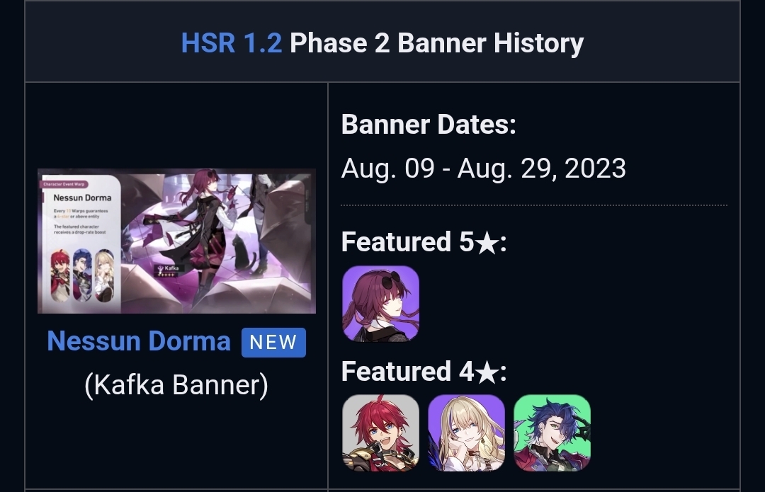 >>562918721You know what? This is made up, but Mihoyo should take note of this banner structure going forward.>Yao and Spergleeasy to pull both, if you didn't gigabrick yourself by spending too much at the end of the previous version>Ashveildesignated early skip banner>SW999 and Evapull both, easy with a skip patch beforehand>Blade and Fatedesignated post-anni skip patch - opportunity to pull on something like a Sparxie or Yao rerun for their cones>Himeko and Nihiluxpull both, easy if you didn't roll on reruns>Robin and Siggathis is where niche characters start coming in so Robin SP is presumably skippable, same with Sigga>Beatrice and Pearlno idea who Beatrice is besides an Umineko charactercould pull just "Beatrice" if she works with previously pulled character, while Pearl is for Sigga and Ashveil and Blade and such>Vita and Stephenpull Vita, Stephen sounds like a free 5* akin to Dan Peter>Maid Galaxy Rangerthrow like 80 pulls at her and see if you get her otherwise SAVE SAVE SAVE for 5.0 and 5.2TLDR: rotating 1 patch with 2 must pulls and 1 skip patch is the ideal banner cycle as long as there are SOME patches with only 1 must pull instead of 2, or with a free character