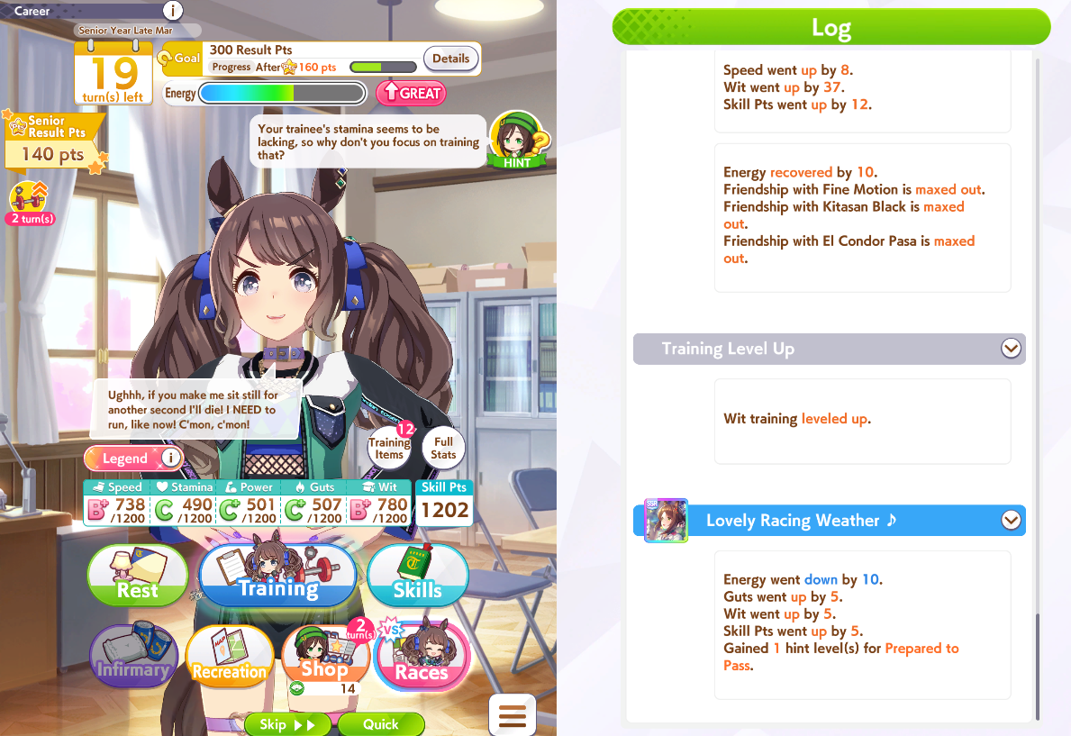 >>562923201Training Brian for sprint CM made me learn you can squeak by the kikuka sho with ~400 stamina and good skills