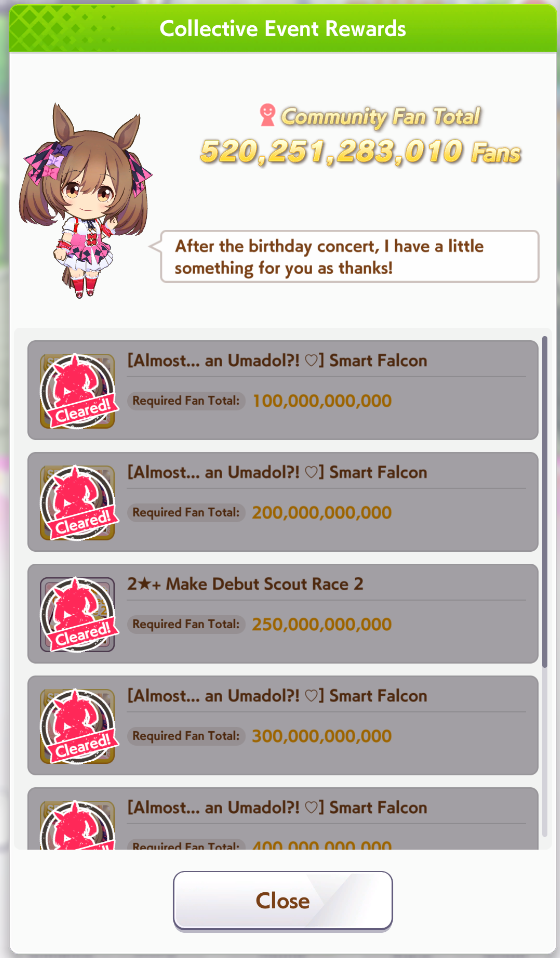 >TFW I was just going to do my 5th Oguri Cap runDamn lol. I was on a rhythm where I was getting 400k per run. Well we did it.