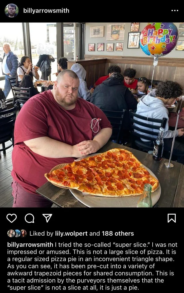 >>562956916Meursault but even then he's wrong. It is indeed a "slice", nothing suggests that a pizza slice must be triangular.