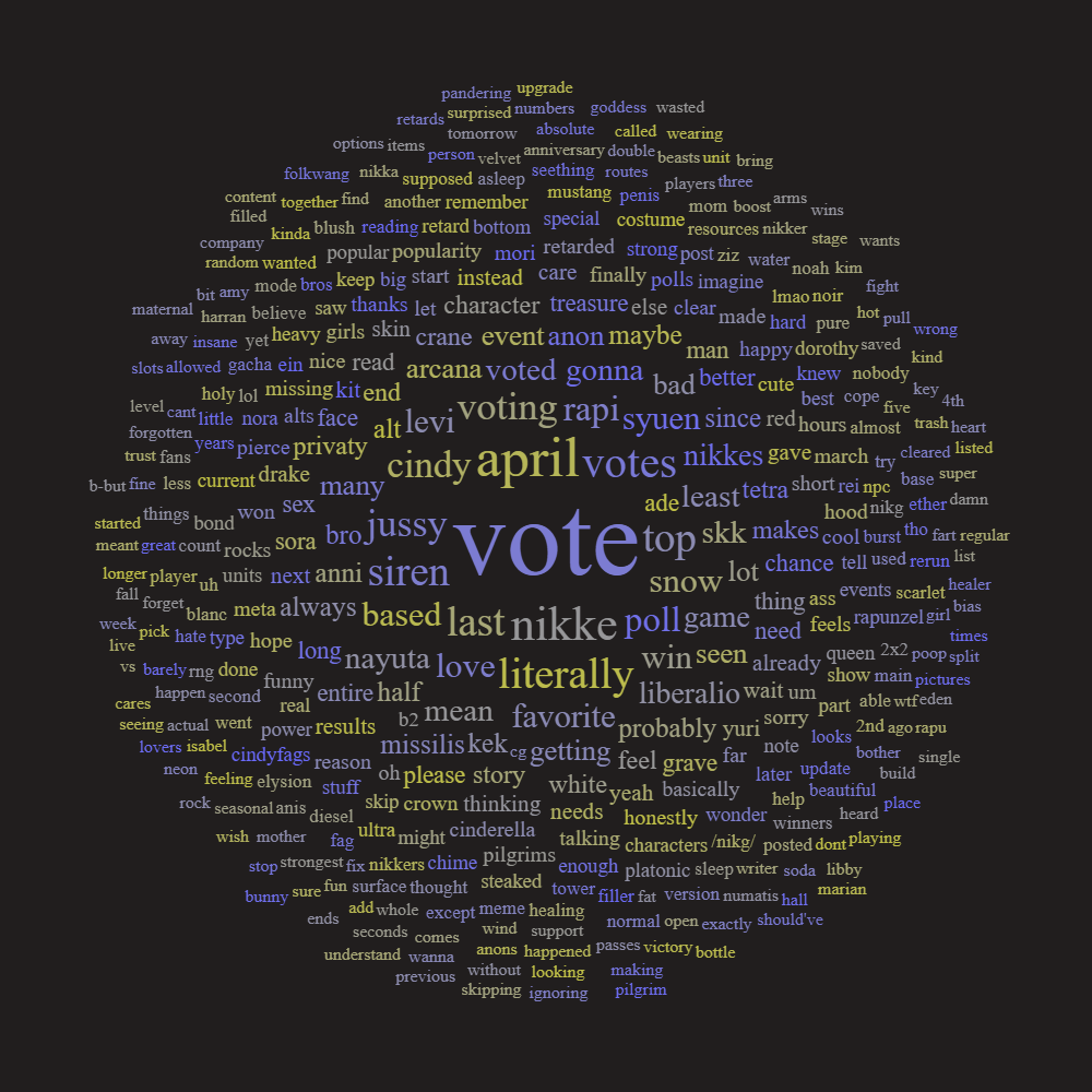 >I VOTED FOR *INSERT CURRENT NUMBER 1 NIKKE* BECAUSE EVERYONE ELSE WAS DOING IT