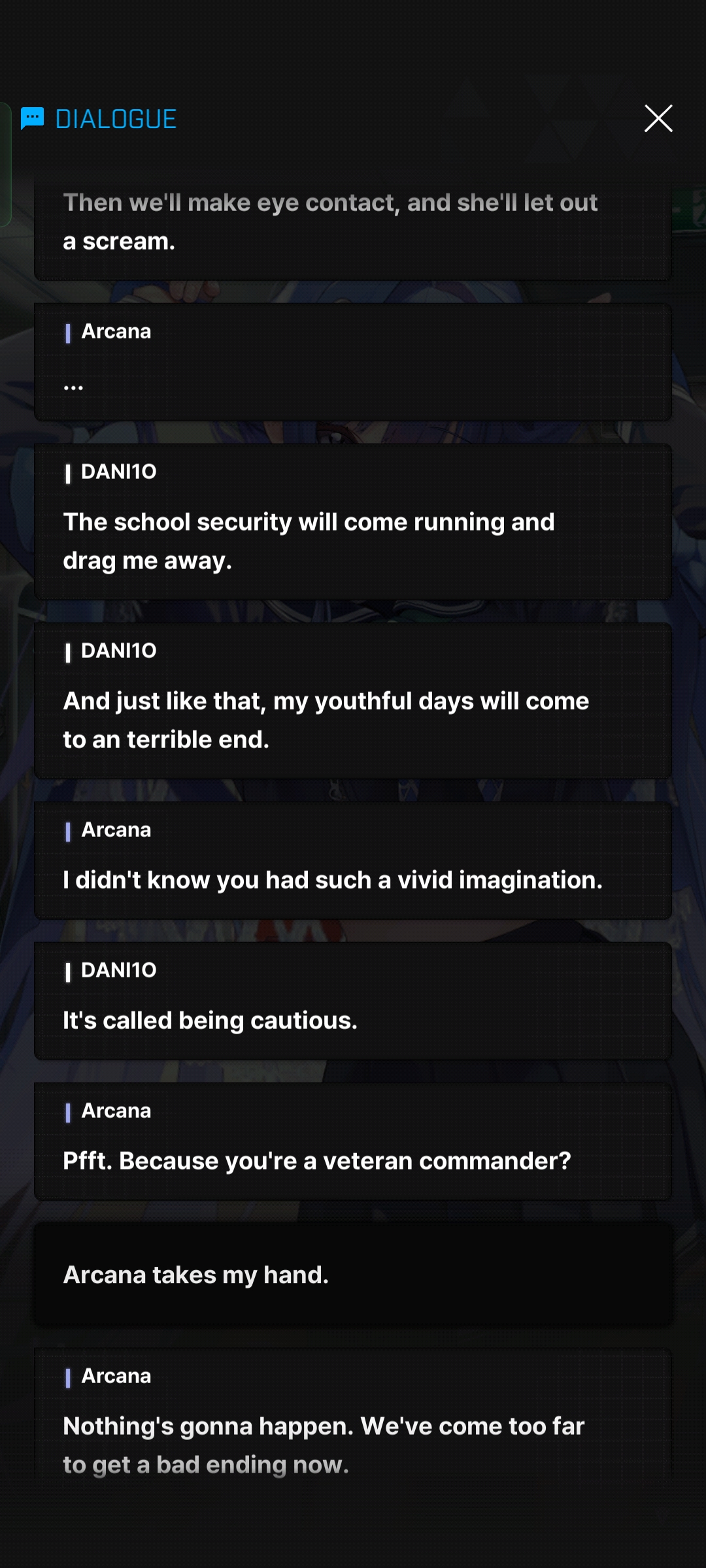 >>562933364I did that for the 2x4 Event because I don't like Privaty. You could even say I dislike her. Arcana is just boring. [spoilerp]I read the full Part 1 of Nora's event though I skipped Part 2[/spoiler]
