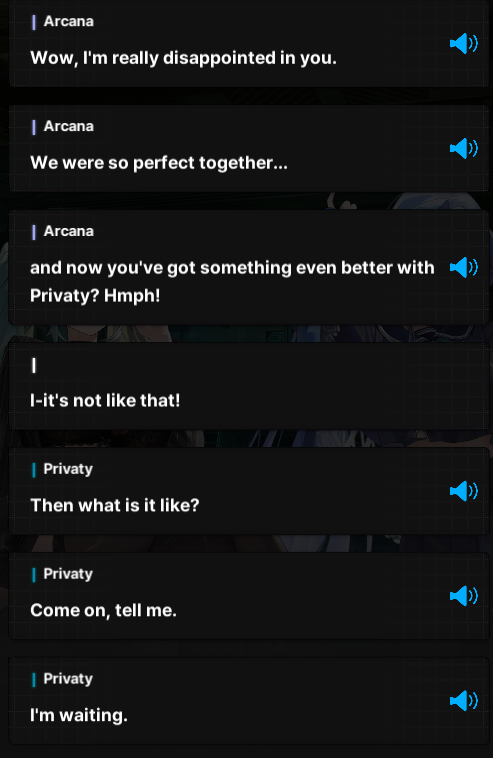 >SxA and TxA routes end on the less committed 大好き (Daisuki) from an outgoing Arcana>SxP and TxP routes end on the much heavier, intense soulmate 愛してる (Ai shiteru) from Privaty who struggles to express her emotions nearly alwaysThis means Privaty wins, /nikg/