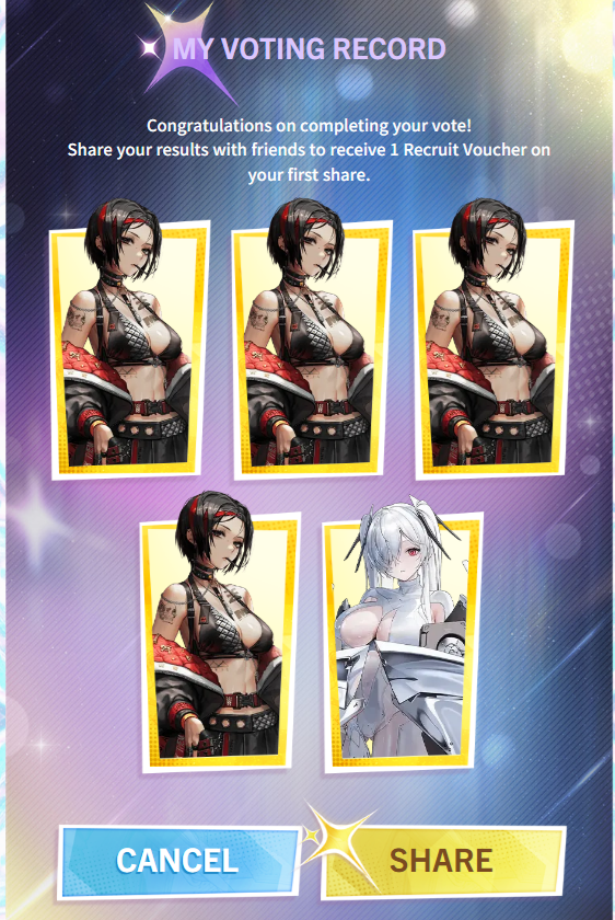 >HEY GUYS! LOOK AT ME WASTING MY VOTES ON OBSCURE NIKKE NO ONE CARES ABOUT!
