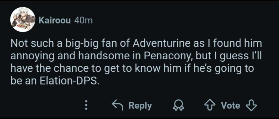 Don't believe any HSR player talking about not liking or wanting 4 stars.No one cared that Gallagher needed eidolons to be good when he was meta and people only started to act like that was a bad thing after Gallagher fell off because they could no longer use him to attack Genshin. Not wanting 4 stars is a necessary stance to take because wanting 4 stars means criticizing HSR and that means going against the tribe and letting Genshin get a win.