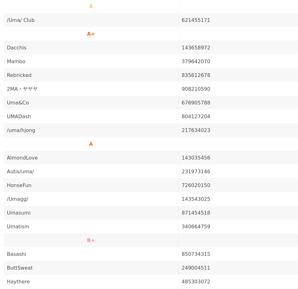 >>562944118The rating is based off of how many total fans the club has earned that month. If the club is in the top 1000 it gets A rank, 500 for A+ 100 for S, and I think you need to be top 10 to get SS.The higher your rank the more monthly gibs you get. This is why most of the higher ranked clubs have fan quotas, danchou will you kick you out if you dont meet them at the end of the month.