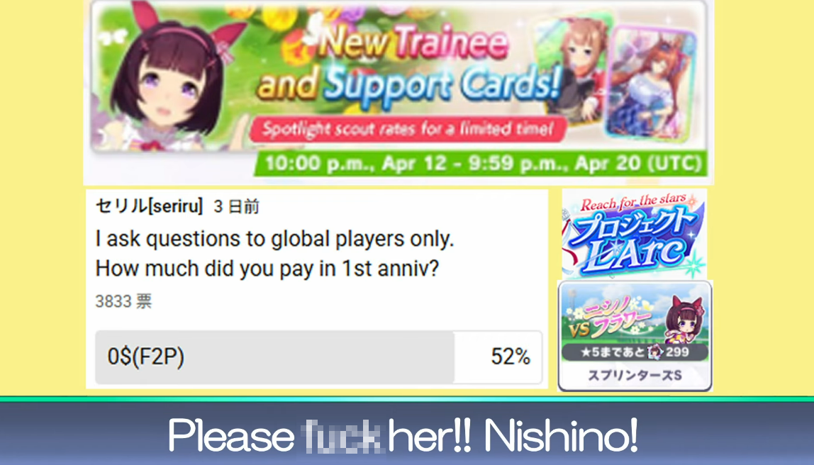 >>562953821Please be a tier 3 sub to Curren's umafans.