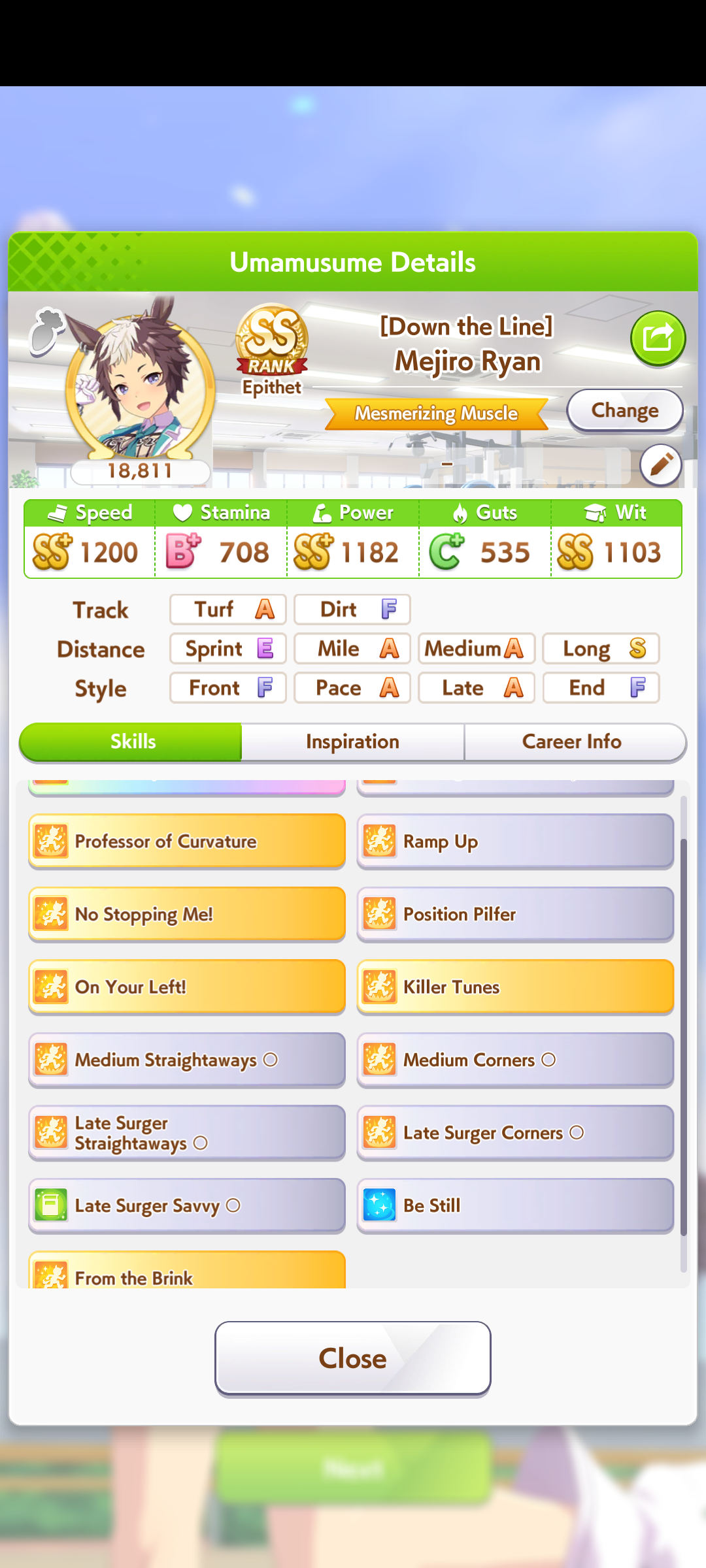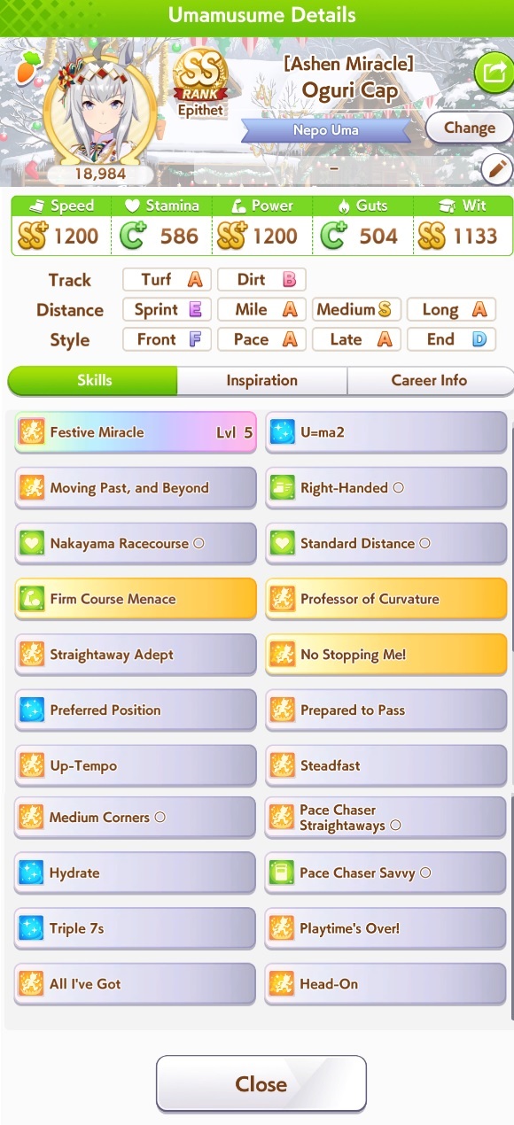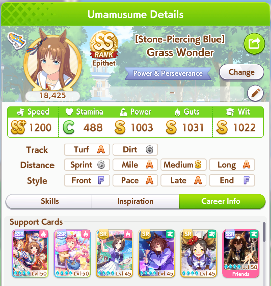 >>56294473515% speed and 15% pow is literally 20% speed and 20% pow on a highroll which is pretty insanei will force her into a late surger for cm12