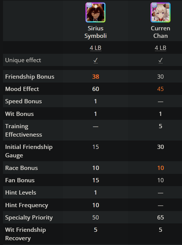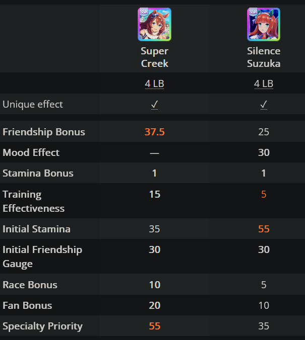>>562952475She also has 5 base TE, on top of the higher base Friendship bonus, on top of the higher starting friendship, and the higher specialty priority.She is effectively stronger with all of her clicks until Senior year summer, and even then it’s close. The 30 energy is also invaluable.