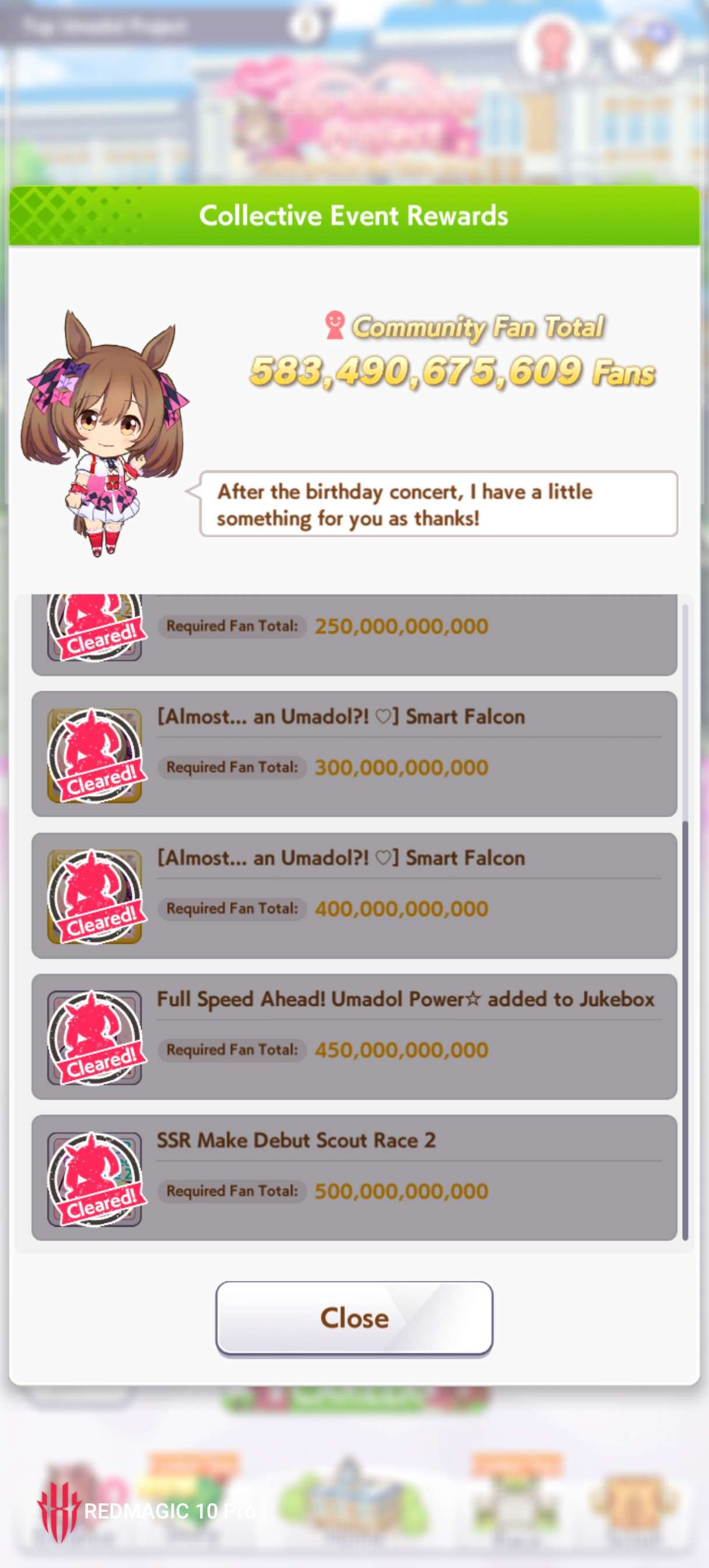 Previous: >>562932540>Global Game NewsLink your account to Cygames iDCurrent Scenario: Make A New Track aka "Trackblazer"Current Rate Up Trainee: Ballroom Seiun Sky (3*), Ballroom Fuji Kiseki (3*)Current Rate Up Support Cards: SSR Symboli Rudolf (STA), SSR Sirius Symboli (WIT)Current CM: Aries Cup - Nakayama Turf 2000mCurrent Event: Ligne Droite Story Event>Schedule03/02 - 04/14 - Halved TP Cost & 2x Career Mode Rewards04/12 - Nishino Flower (3*), Daiwa Scarlet (SSR), Sweepy (SR)04/20 - Yaeno Muteki (3*), Ines Fujin (SSR), Twin Turbo (SSR)04/20 - Aries Cup - Medium/Right/Spring/Firm/200004/26 - Golshi Week Celebration04/26 - Cheerleader Nice Nature (3*), Cheerleader King Halo (3*), Bamboo Memory (SSR), Seeking the Pearl (SSR)04/26 - Tracen Cheer Squad Story Event04/30 - Ines Fujin (3*), MR. C.B. (SSR), Tokai Teio (SR)https://pages.snep.pw/uma/anni-skill-changes>JP Game NewsCurrent Rate Up: Sakura Bakushin O (3* alt), North Flight (3* alt), SSR Daring Tact, SSR Daring HeartNew Scenario "Beyond Dreams" releasedTimeline: https://uma.moe/timelineCygames Webstore: https://webstore.cygames.com/en/umamusume_en>Thread Clubshttps://rentry.co/umaglobalclublistYou must be E3 (20k points) to join a circle. Apply with /uma/ or /vg/ in your profile or post ID in the thread.>All Guides & Resourceshttps://rentry.org/uma26Game databasehttps://gametora.com/umamusume (Click the gear to switch between JP / global server info)A basic guide for newfagshttps://rentry.org/umaglobalFind networks if your region is blocked from the game or clienthttps://www.umavpn.topSeiyuu & Concertshttps://rentry.org/umstUmamusume Birthday Calendarhttps://ウマ娘.攻略.tools/events/birthdayUma Texthttps://umareader.idsmile.xyzCustom Stickershttps://schizo.farm/resources/stickers