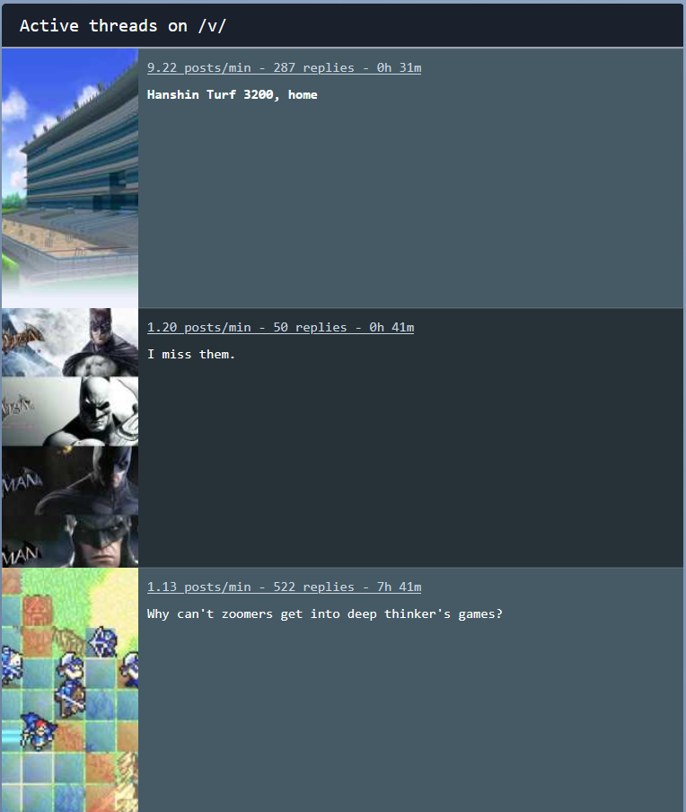 >>563047614Because /vmg/ has a rule where moving too fast gets you banned, and we recycle threads every 3 days. That uma thread has been there since Nov 2025.Too fast for /vmg/ and we’d be homeless, then flood /uma/ again in the end.