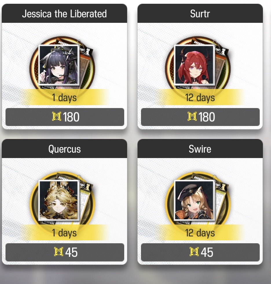 >>562985773ThornsLemuen, narantuya, april, kroos2AmiyaSaria, nearlPerfumer, AnselBeanstalkGladiiaRope and shaw only need skill level 4That'll keep you busy until free rolls from SAlt give you a couple more ops.
