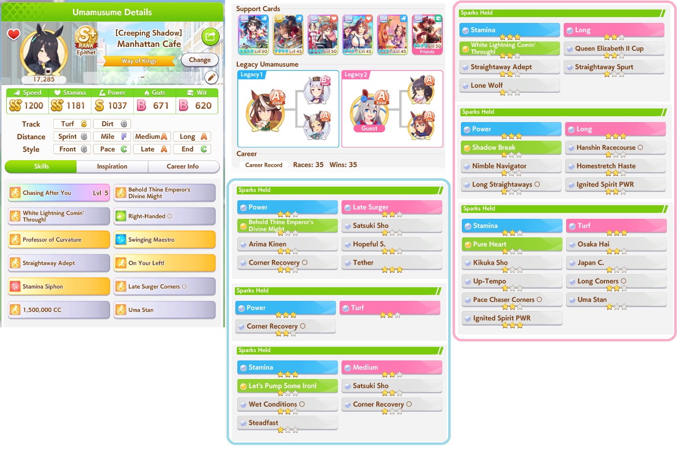 Sweepy can make S+ umas now (if you give her a deck capable of UG and she hits fast learner on a 20% speed uma)