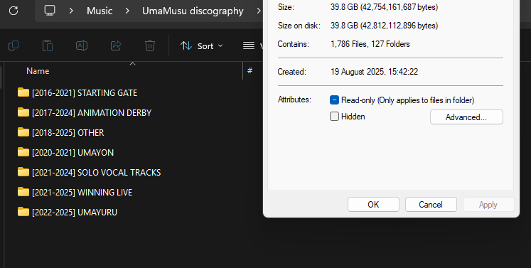>>562976492>>562976462knowing me that's 39 gb of shit i would never listen to unless someone else put it on.