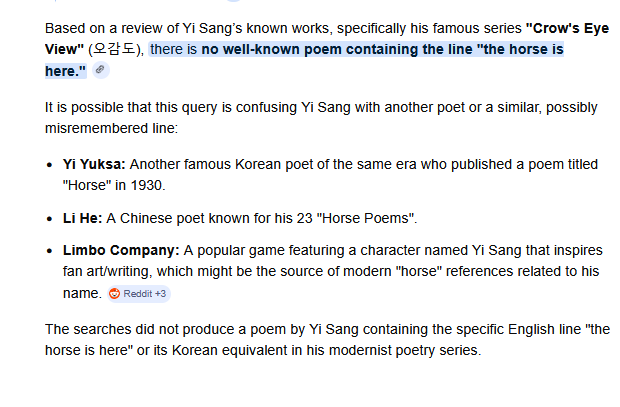 google ai used to say that yi sang had a poem about horses with a line being "the horse is here"